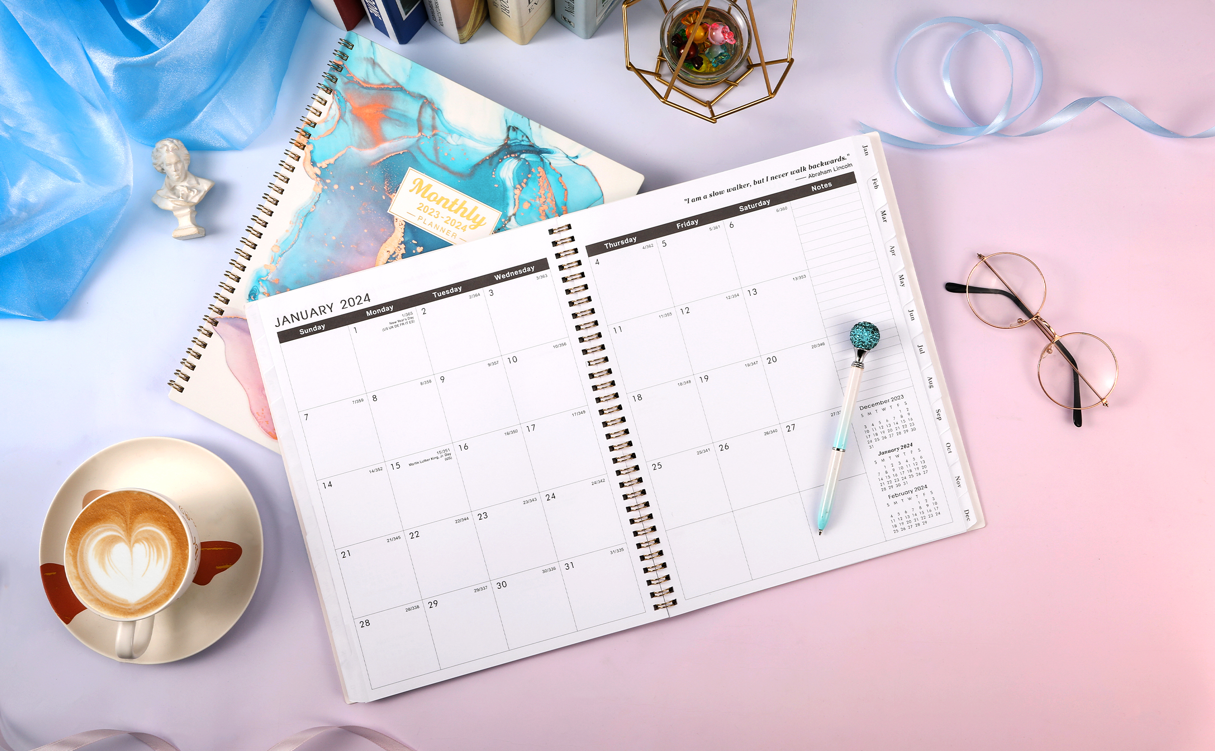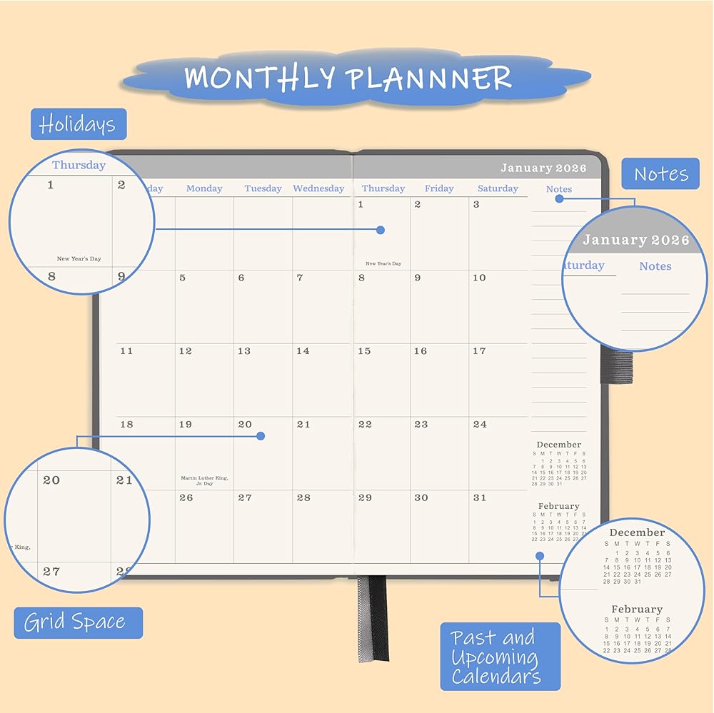 • 🍭 علامات تبويب وجيب - يتم فصل كل شهر بعلامات تبويب، مما يجعل خطتك أنيقة وسهلة القراءة. جيب داخلي على الجانبين لتخزين الأشياء المرتخية.