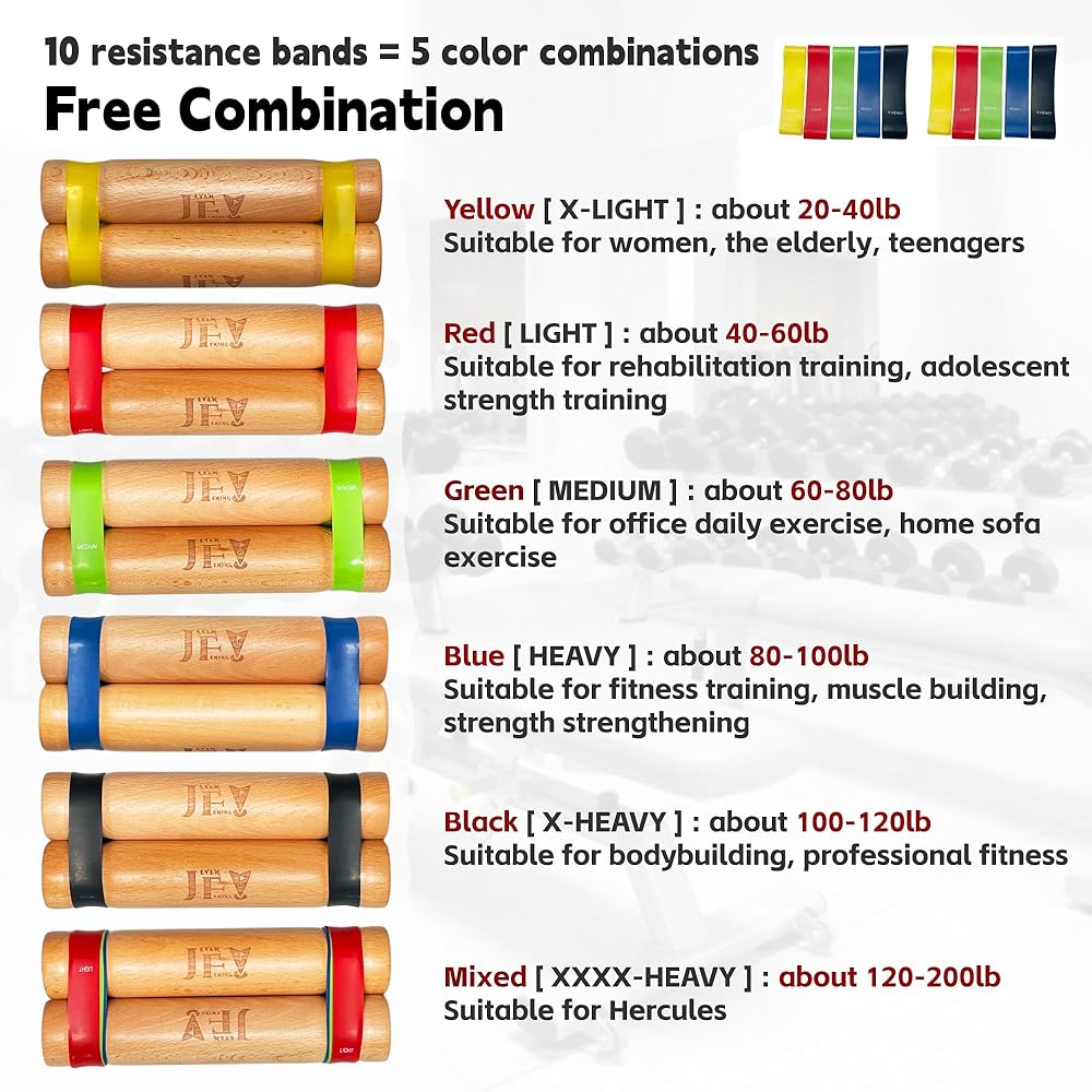 【معدات تدريب قوة الجزء العلوي من الجسم عملية/فعالة】 نقدم 5 مجموعات من أشرطة المقاومة التي يمكنك دمجها وربطها بحرية من كلا الطرفين، عصا الرفع قادرة على الحصول على 20-200 رطل من المقاومة المختلفة، مناسبة لمعظم الأشخاص، مثل : المبتدئين، كبار السن، النساء، لاعبي كمال الأجسام، إلخ.