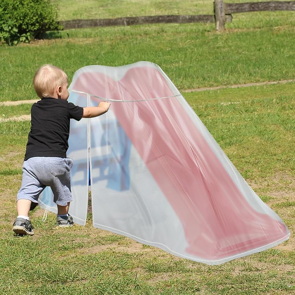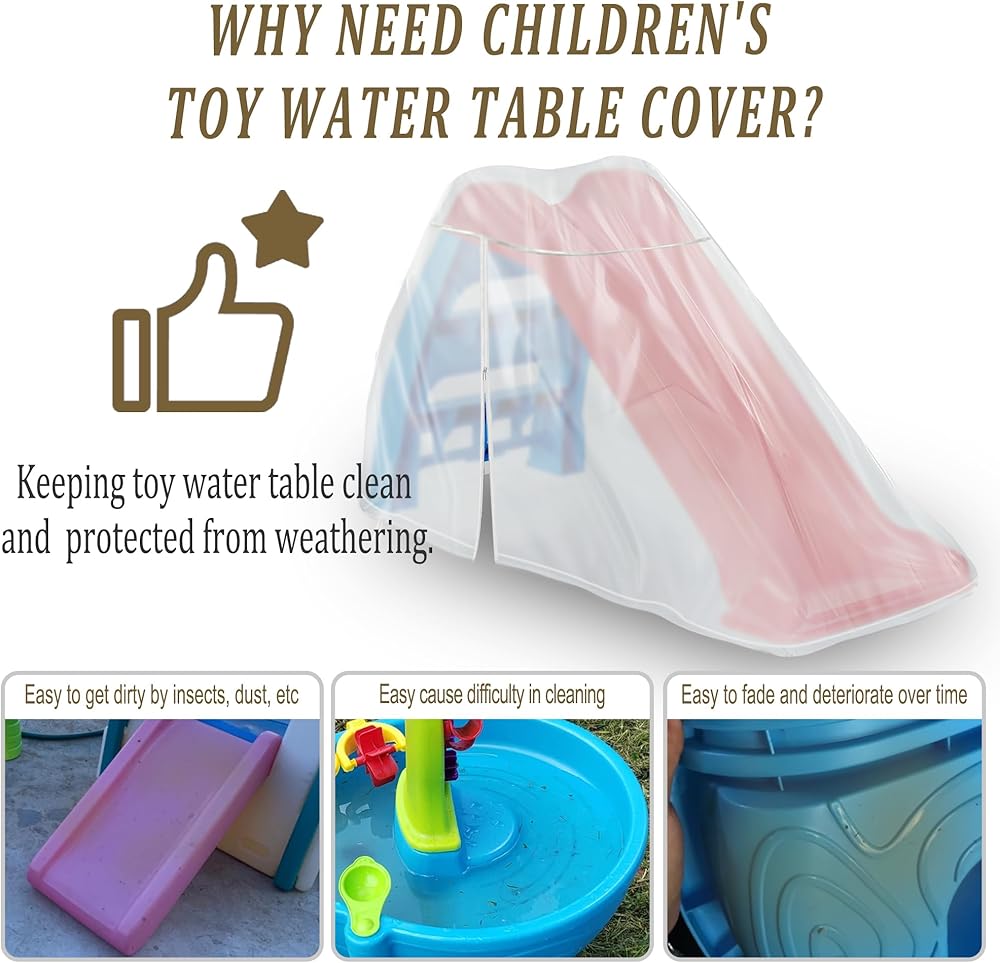 • 【 MATERIAL】- This children's Toddler Slide Cover is made of Translucent frosted material with added waterproof laminated base coat, double needle sewing process has a stronger structure, can withstand all outdoor elements, maximize your protection Children's Toddler Slide Cover toy table always looks new.