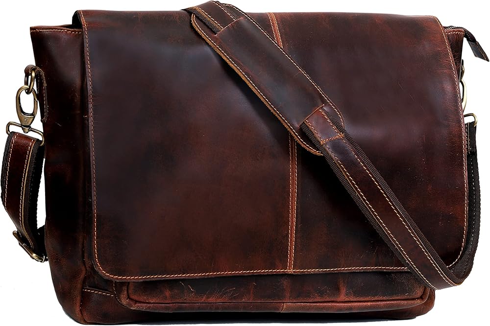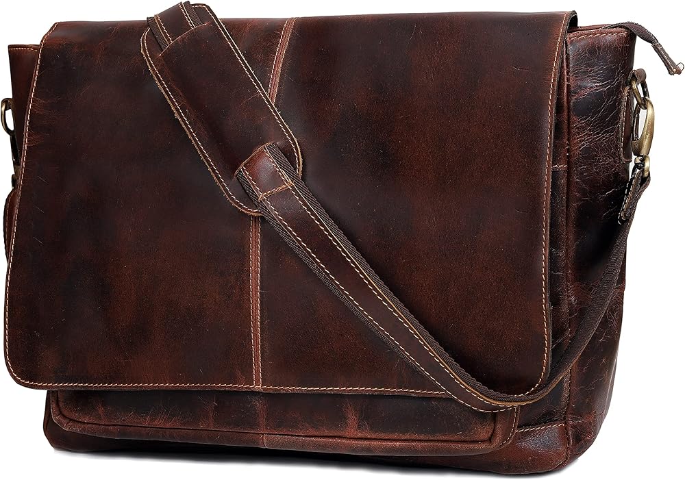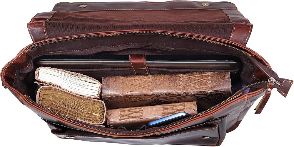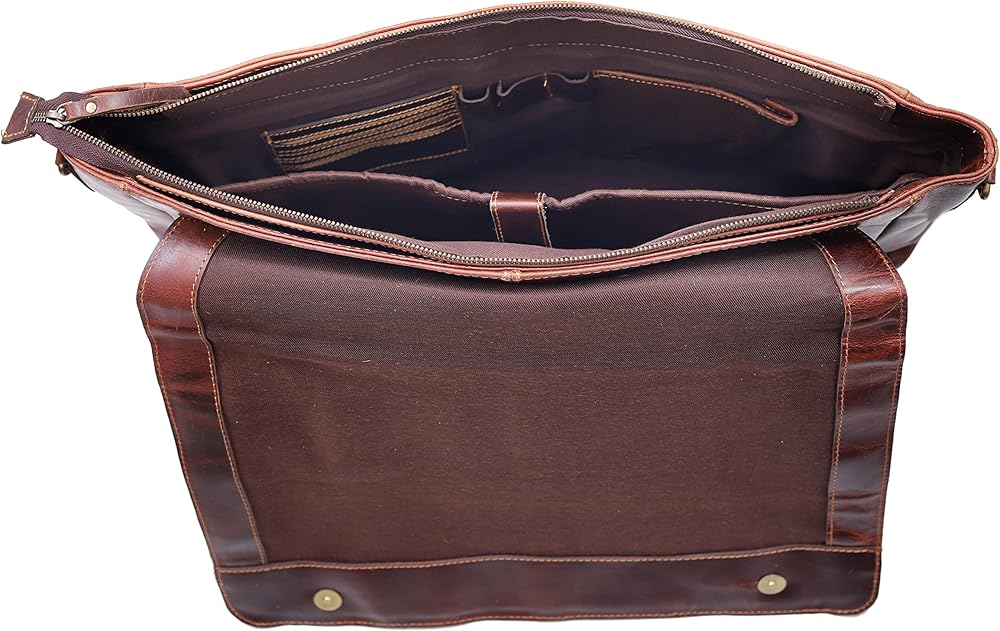 حقيبة جلدية ذات مظهر ريفي وعتيق: حقائبنا مصنوعة من الجلد الأصلي بنسبة 100% من قبل أفضل الحرفيين، مظهر كلاسيكي وعتيق وريفي، يمكنك فقط طيها/سحقها للحصول على لون تجاعيد أفضل. حقيبة ماسنجر من الجلد الطبيعي مصنوعة يدويًا على يد فنان محترف ذو خبرة. عند الذهاب إلى المكتب أو الكلية، نحتاج إلى شيء لحمل أساسياتك طوال اليوم مثل الكمبيوتر المحمول والملفات والمجلدات وغيرها من الممتلكات لتناسبها في مكان واحد، حيث تعتبر حقيبة الكمبيوتر المحمول الجلدية لدينا مثالية لجميع احتياجاتك.