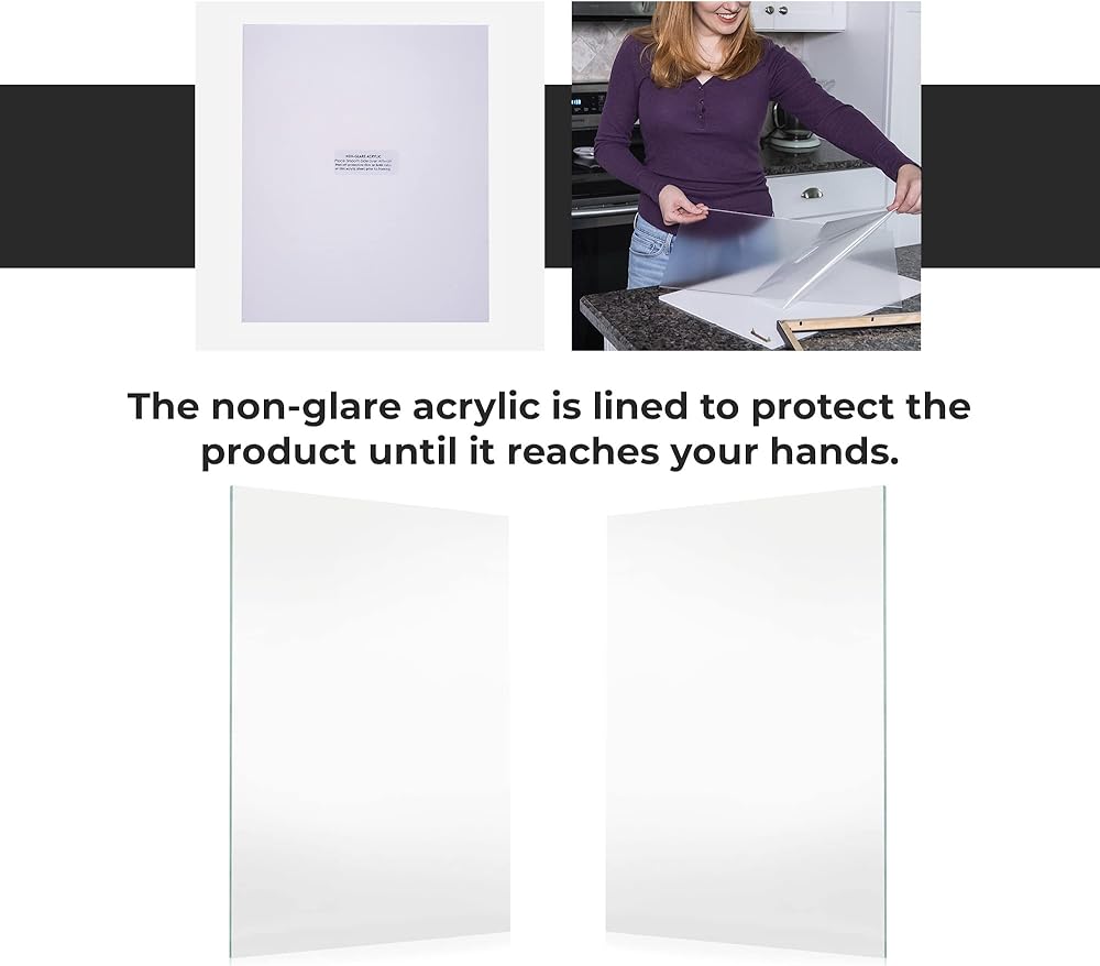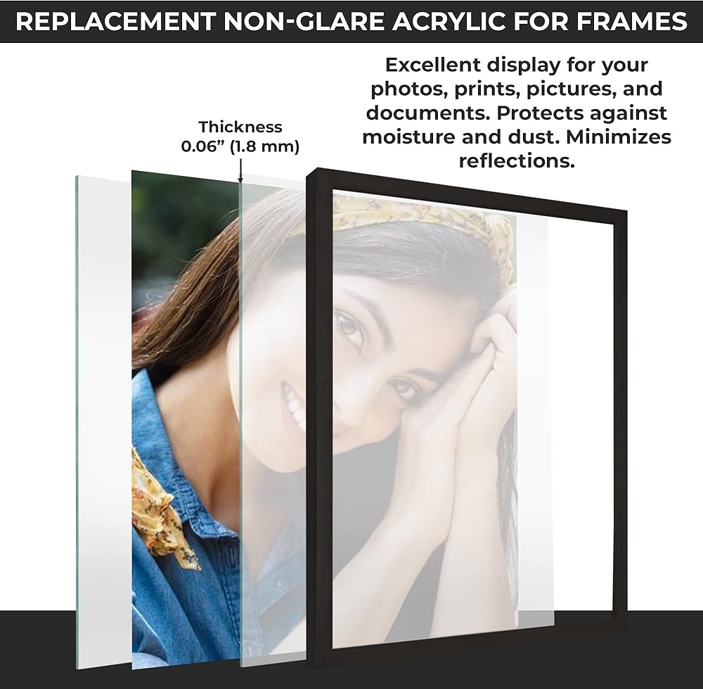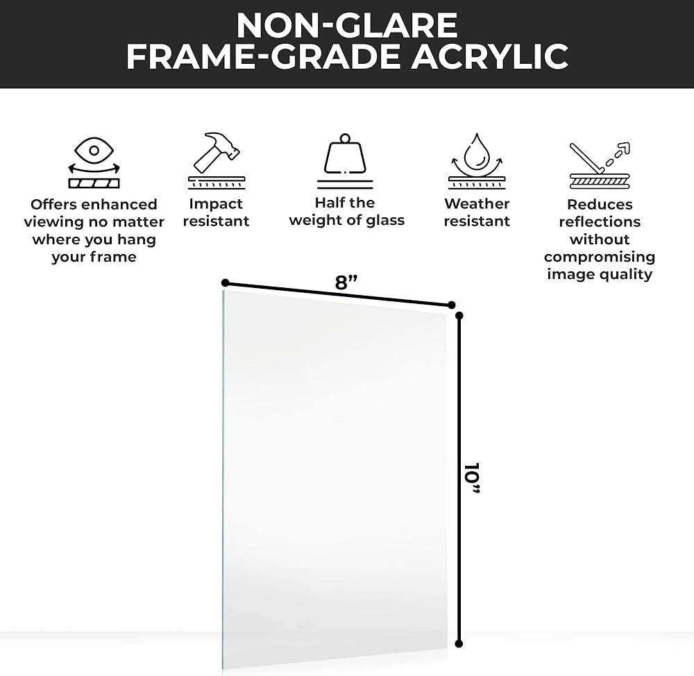 أكريليك بدرجة إطار غير لامع: خفيف الوزن ومقاوم للأشعة فوق البنفسجية ومقاوم للكسر لحماية الصور والمطبوعات المؤطرة مقاس 8x10 مع تقليل الانعكاسات والوهج.