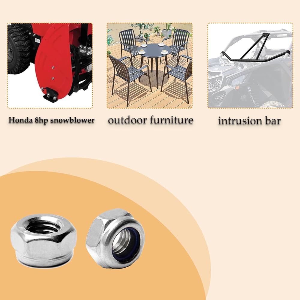 سيناريوهات التكيف المتنوعة - إنها رائعة لاستبدال المكسرات المكسورة أو المفقودة في سيناريوهات مختلفة؛ سواء كنت بحاجة إلى إصلاح هذا الكرسي المتذبذب، أو إصلاح جهاز منزلي، أو حتى تتسخ يديك بمشروعات DIY، فإن صواميل القفل هذه جاهزة للتحدي؛ كما أنها تستخدم على نطاق واسع في الصناعات وورش العمل والآلات الهندسية والسفن وحتى الحرف اليدوية