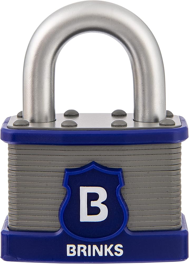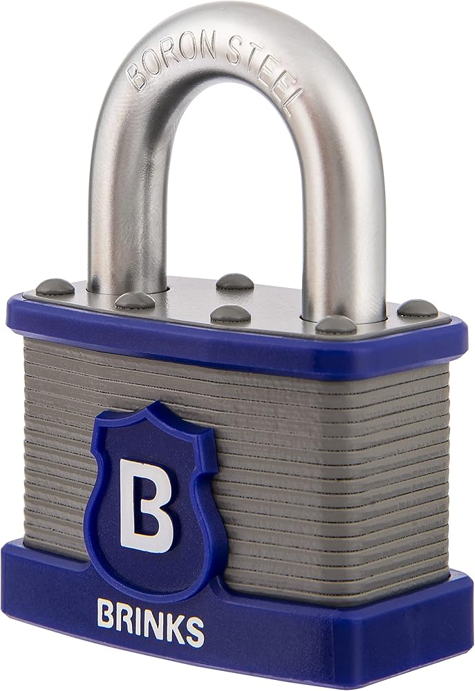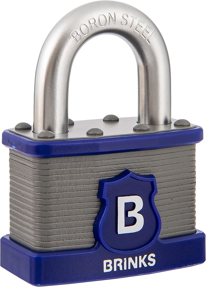 FEATURES - Brink's Commercial Laminated Steel Padlock has a 50mm body with hardened Boron steel shackle for cut resistance. The entire lock has a TPE soft-touch elastomeric jacket to prevent scratches and dings.