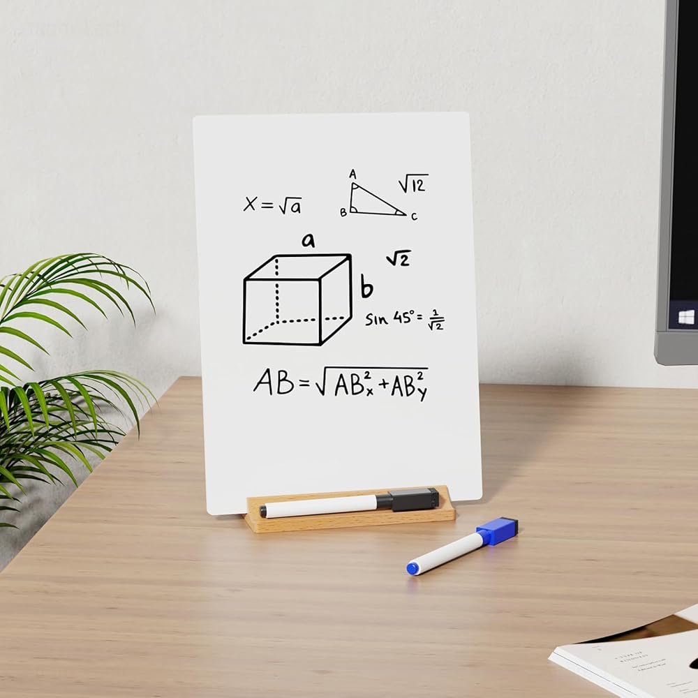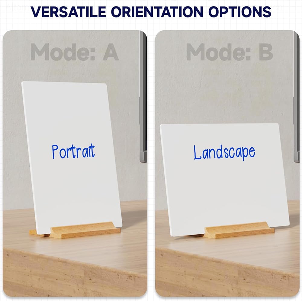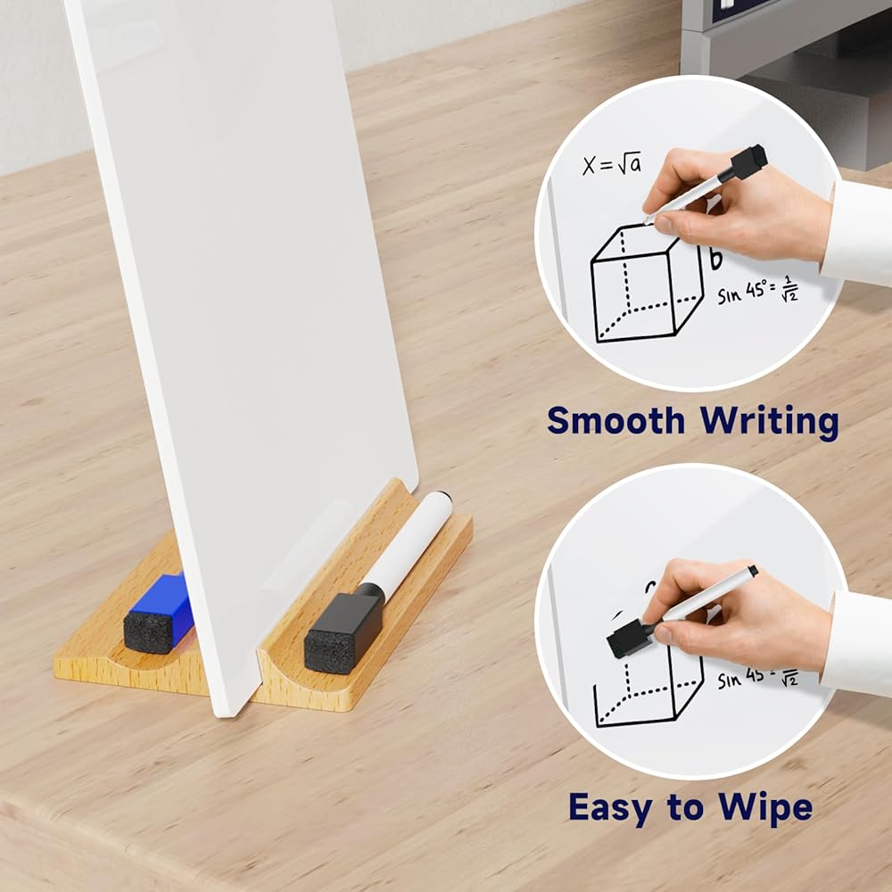 NiOffice Durable & Eco-Friendly White Acrylic Wooden Base Dry Erase Board with Markers & Erasers Set - Compact & Portable 9"x6.5" Writing Surface Multi-Orientation Desk Accessory for Notes & Art