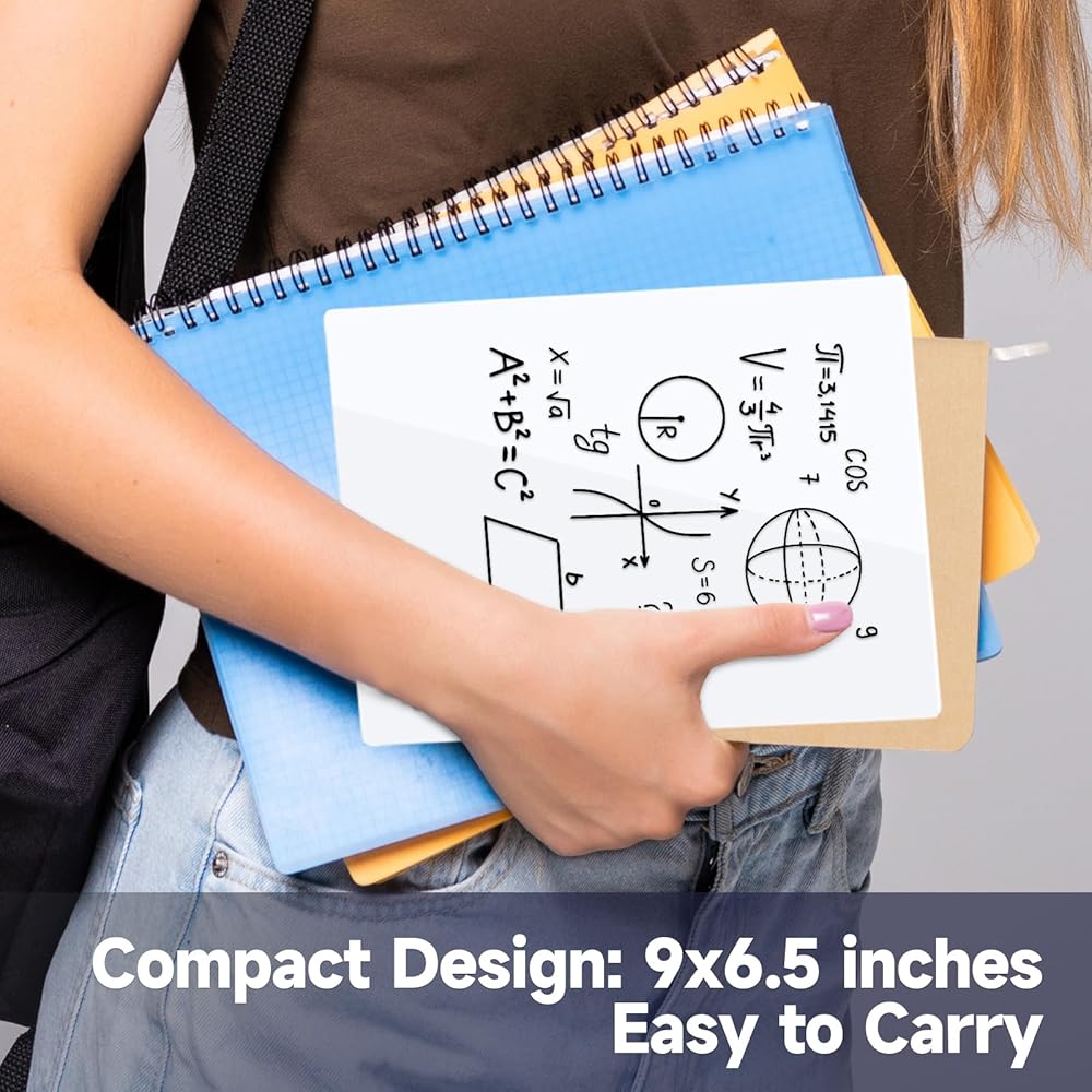 • Compact Design: With dimensions of 9 x 6.5 inches, this acrylic writing board is conveniently portable. Use the whiteboard markers for writing, and benefit from easily replaceable erasers on the markers' caps.