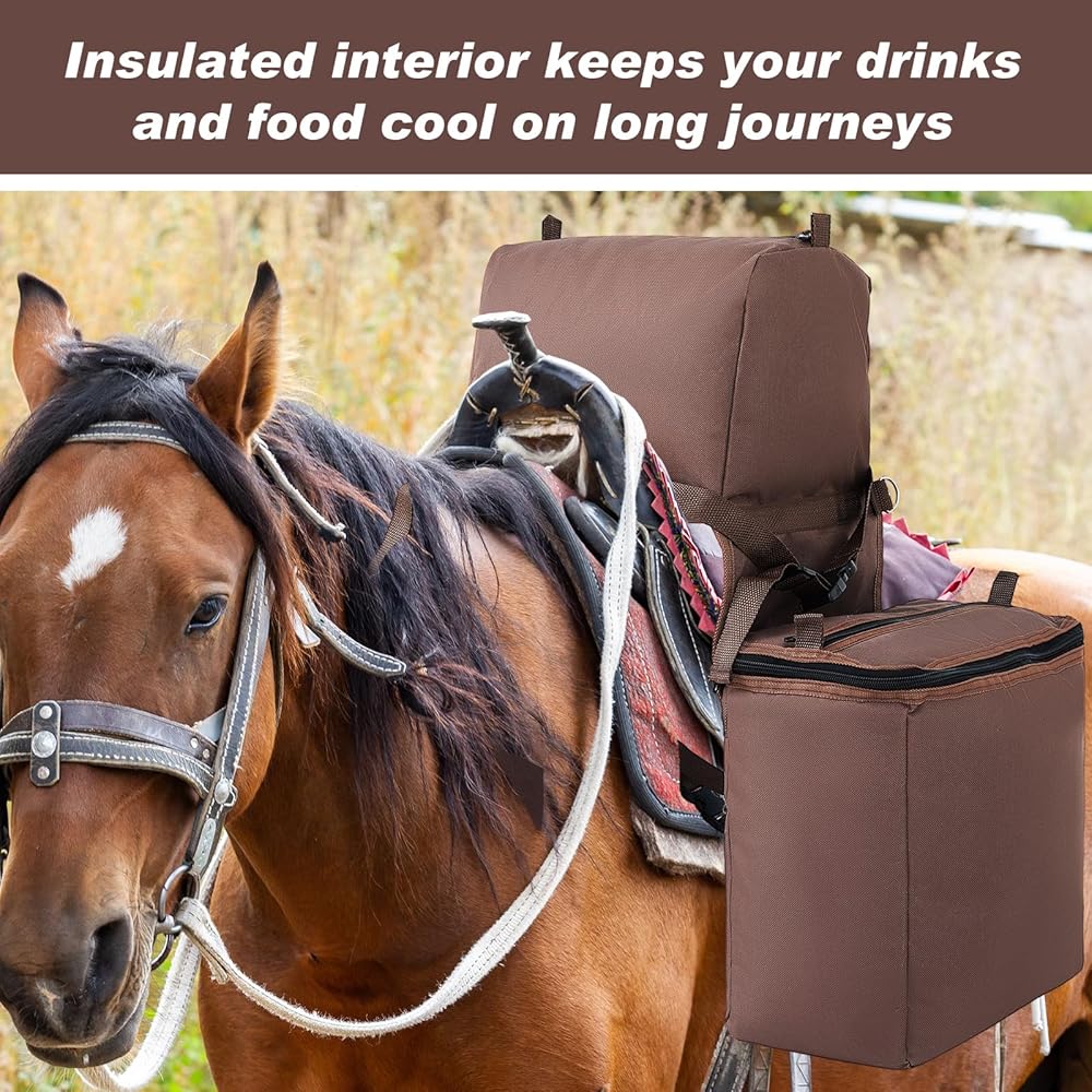 قطعتان من حقيبة السرج المبردة المعزولة المقاومة للتسرب من نسيج أكسفورد 600 دي، حقيبة ركوب الخيل الغربية مع حزام لحامل زجاجات المياه لمعدات الحصان، 11.81 × 11.81 × 5.31 بوصة