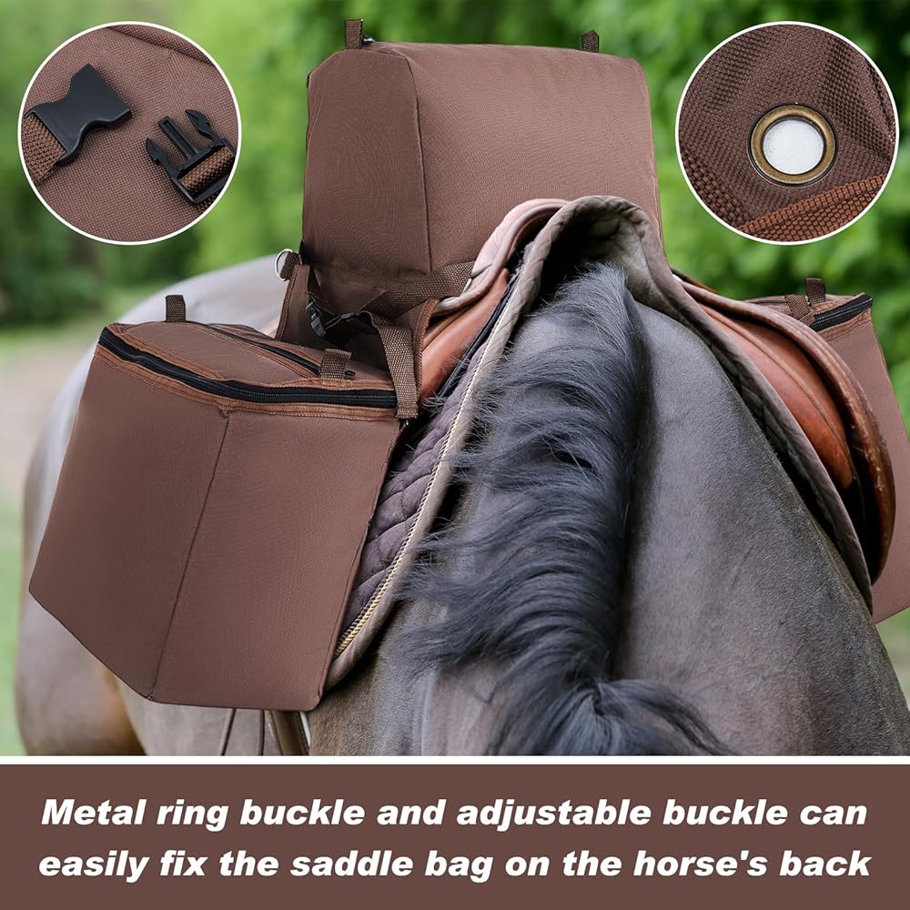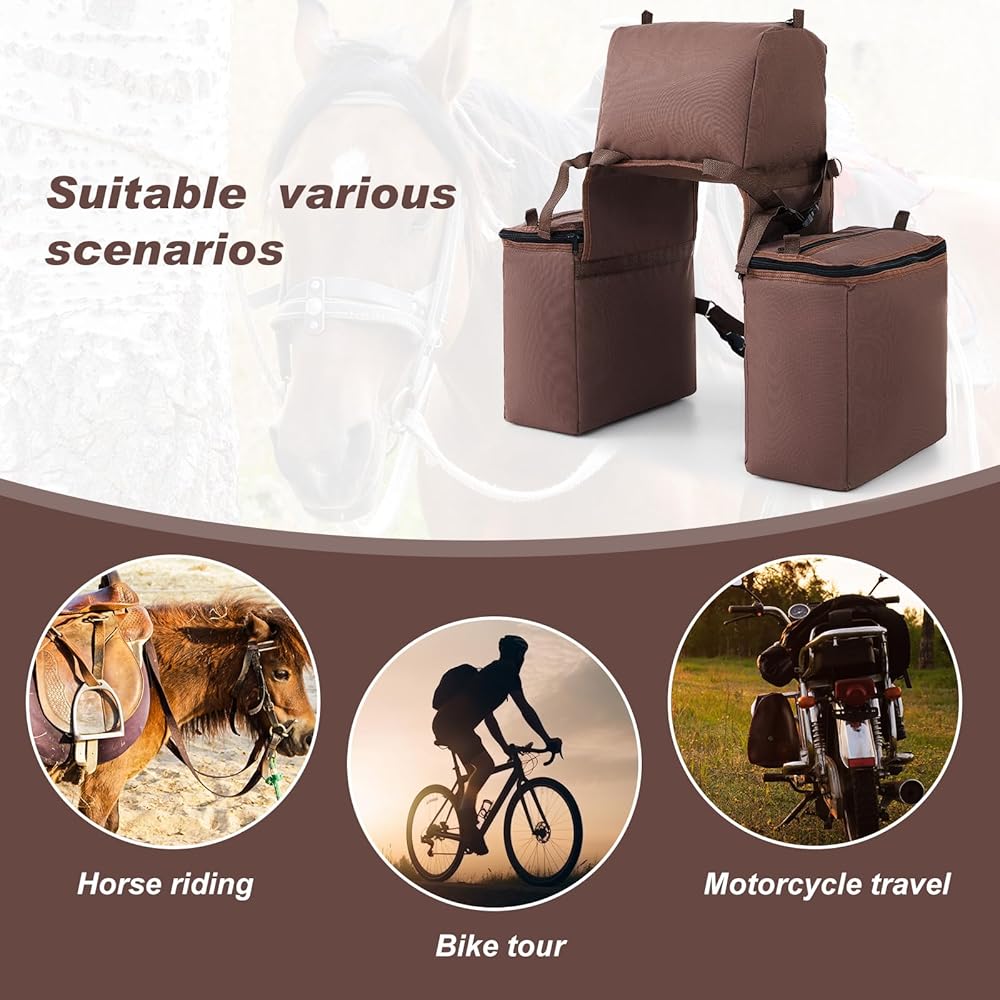 • جودة ومواد لا تقبل المنافسة: حقيبة ركوب الخيل مصنوعة من قماش أكسفورد 600D، المشهور بمتانته التي لا مثيل لها؛ بالإضافة إلى ذلك، فإن المادة العازلة داخل حقائب السرج مقاومة للماء وسهلة التنظيف؛ لذلك لا داعي للقلق بشأن المشروبات المنسكبة أو غيرها من الحوادث الفوضوية التي تلحق الضرر بحقيبتك أو تتسخها