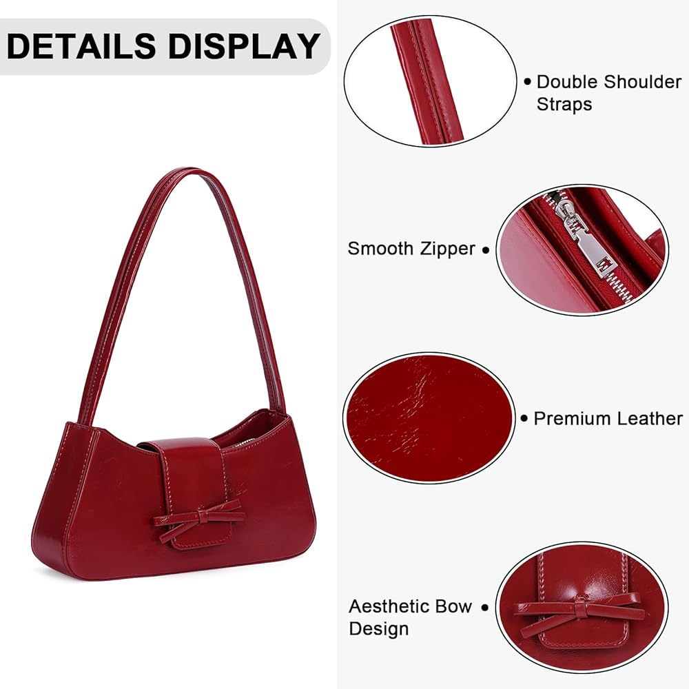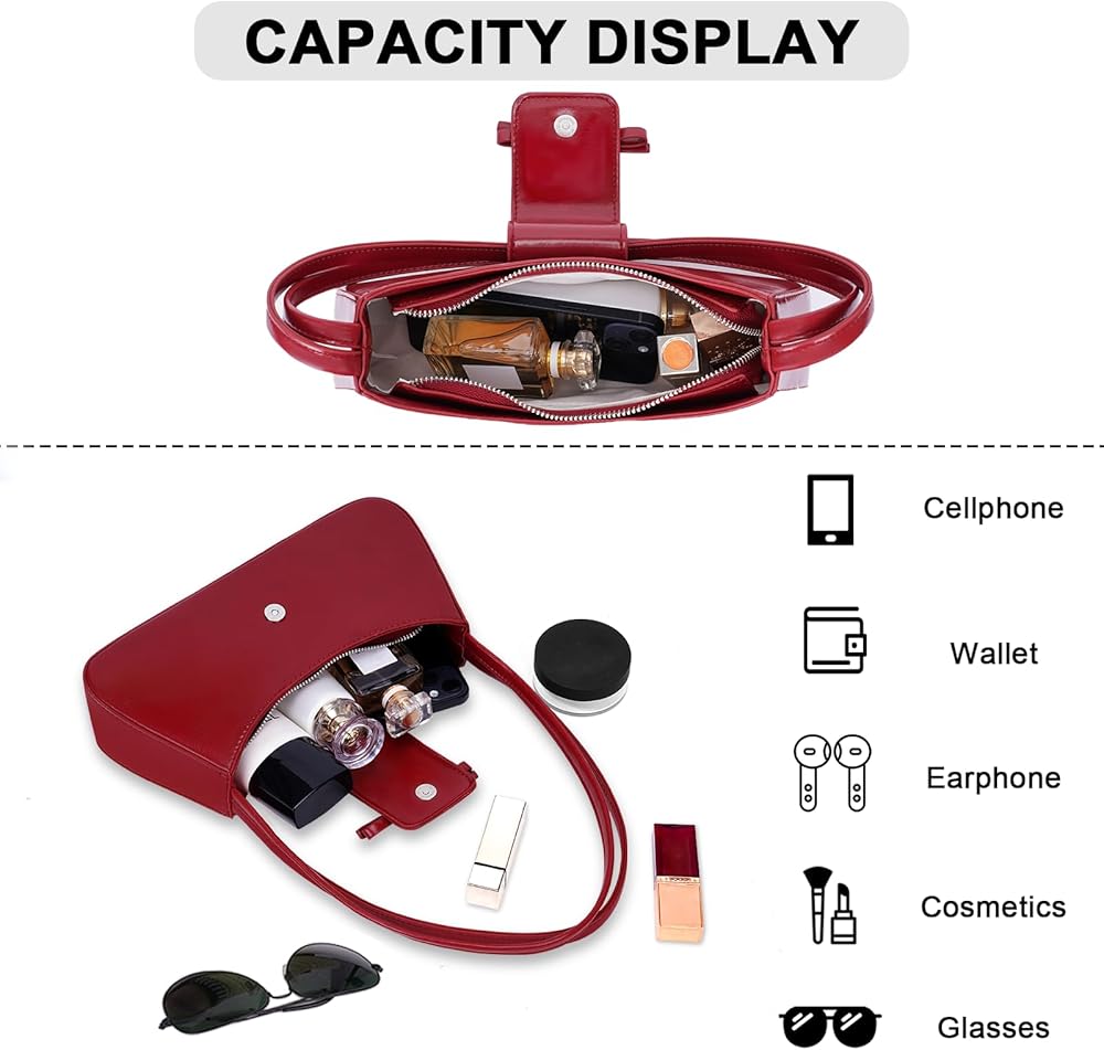 【Premium Material】: This small cute red shoulder bag is made of high-quality vegan leather, ensuring long-lasting durability and providing a comfortable touch.
