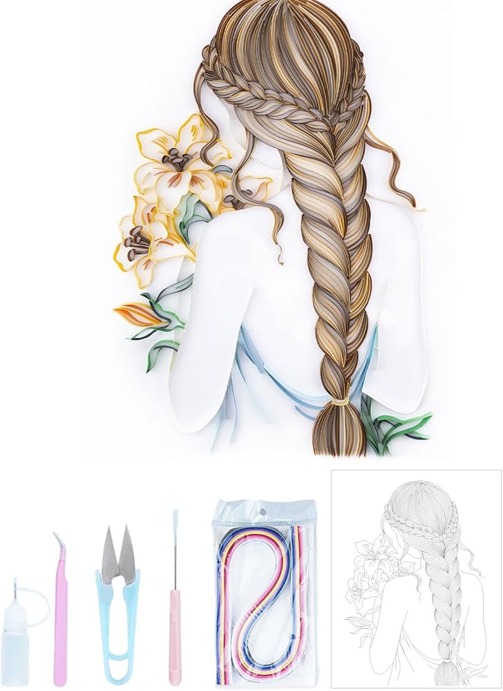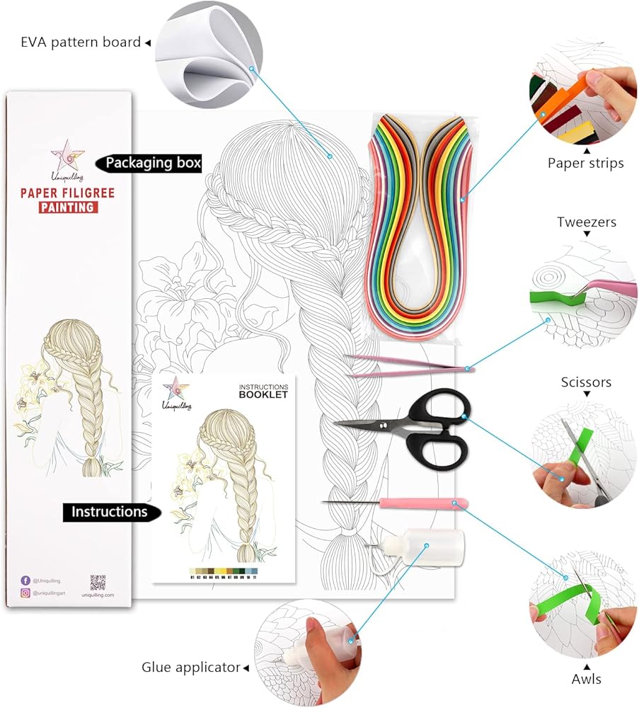 مجموعات لف طلاء تخريمية ورقية من Uniquilling، لوحة بالأرقام للبالغين - فتاة مع باقة، أفضل الهدايا لتزيين الحائط يدويًا يدويًا (مجموعة الرسم + مجموعة الأدوات)