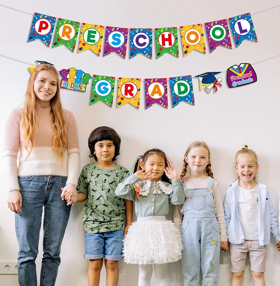 - Great 2024 Preschool Graduation decorations to use on the living room, yard, garden, ceiling, in a doorway, window, and any other place, and used as photo booth backdrop