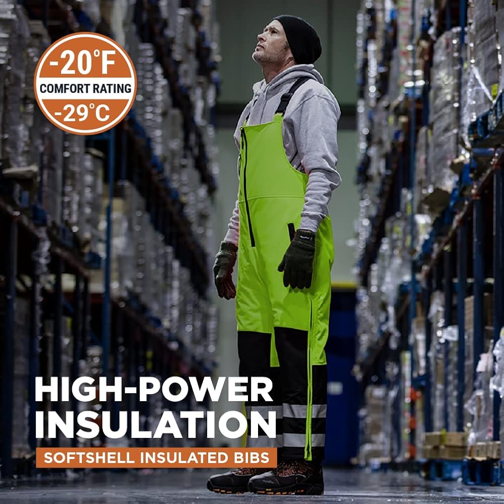 ملابس رجالية متينة: احمِ الطقس الشتوي القارس مع هذه الملابس المقاومة للرياح والماء والبوليستر للطقس البارد. يوفر الشريط العاكس الفضي مقاس 2 بوصة ولون نيون HiVis رؤية أفضل.