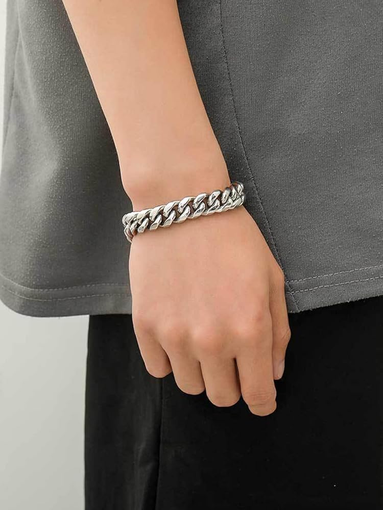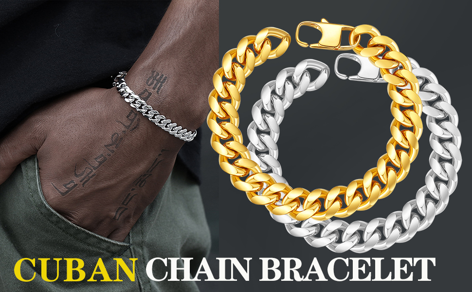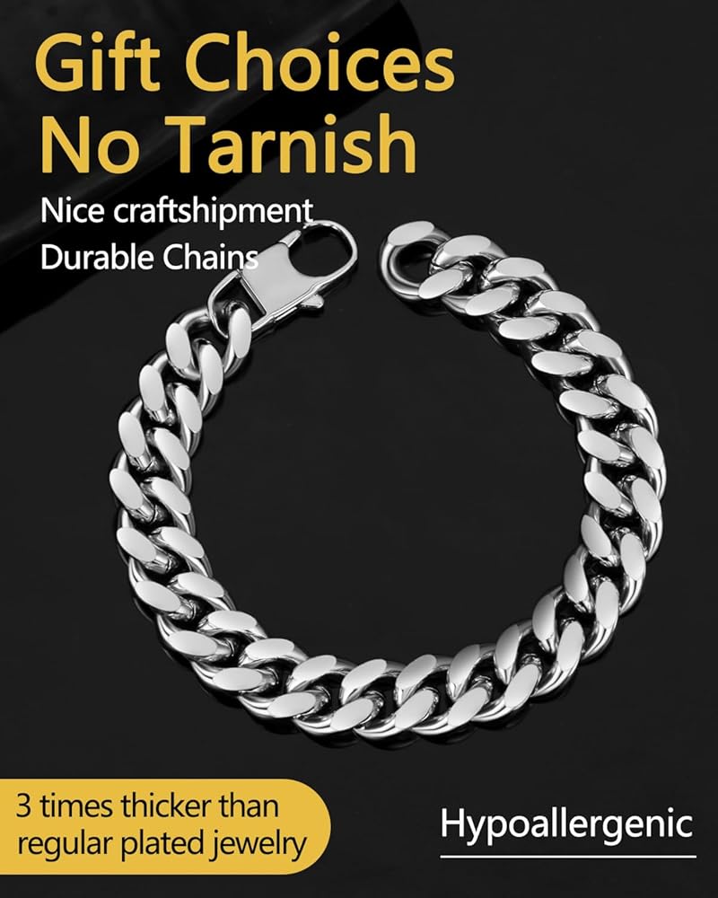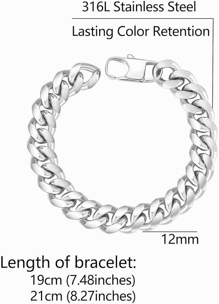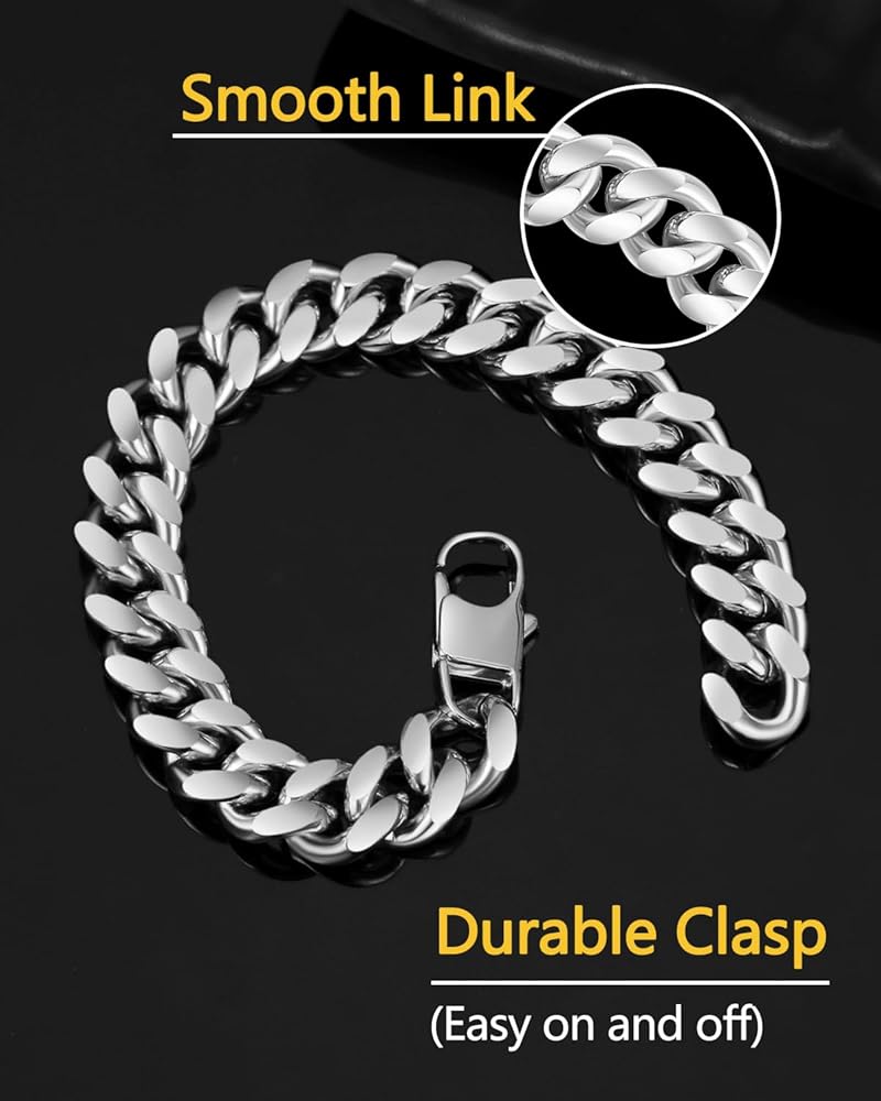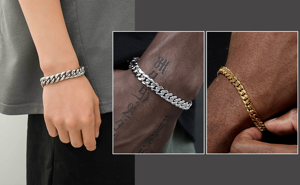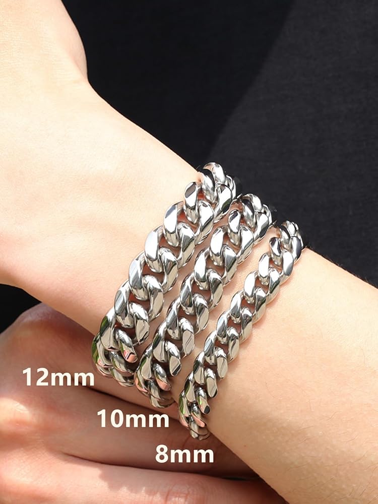 سوار كوبي متين من الفولاذ المقاوم للصدأ: سوار سلسلة مجوهرات هيب هوب مصنوع جيدًا، حجم مثالي وارتداء مريح، سواء في المناسبات غير الرسمية أو الرسمية، يتناسب جيدًا مع جميع مظهر ملابسك.