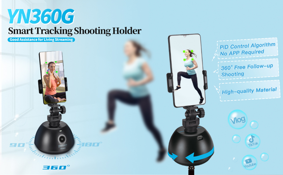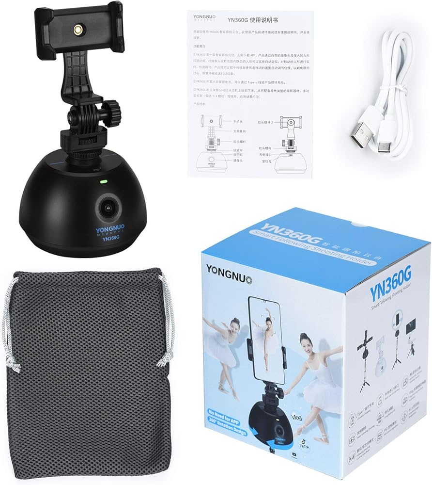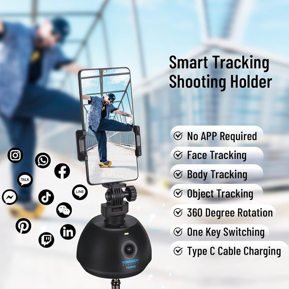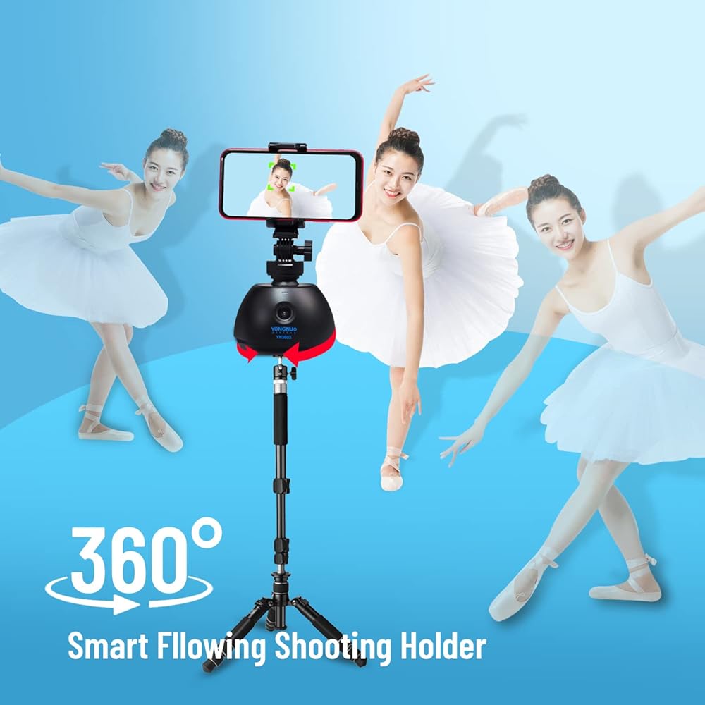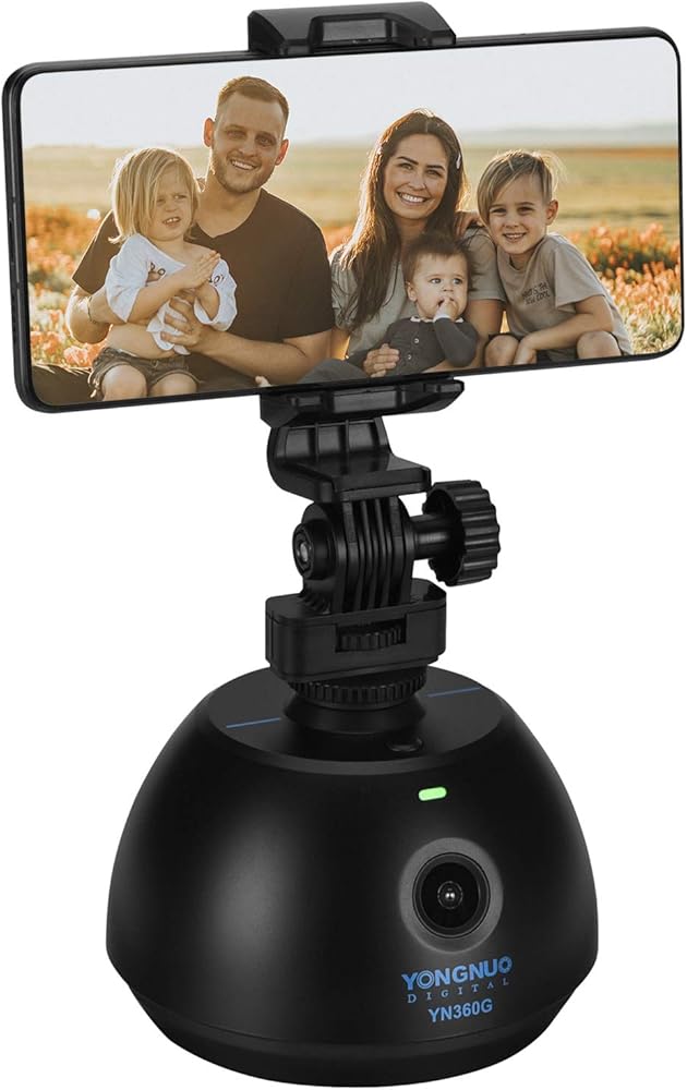 YONGNUO حامل هاتف للتتبع التلقائي، لا يتطلب تطبيقًا وإعدادات، صور ومقاطع فيديو بدون استخدام اليدين بزاوية 360 درجة، لجميع الهواتف المحمولة