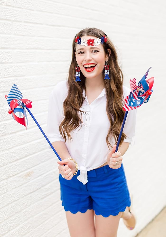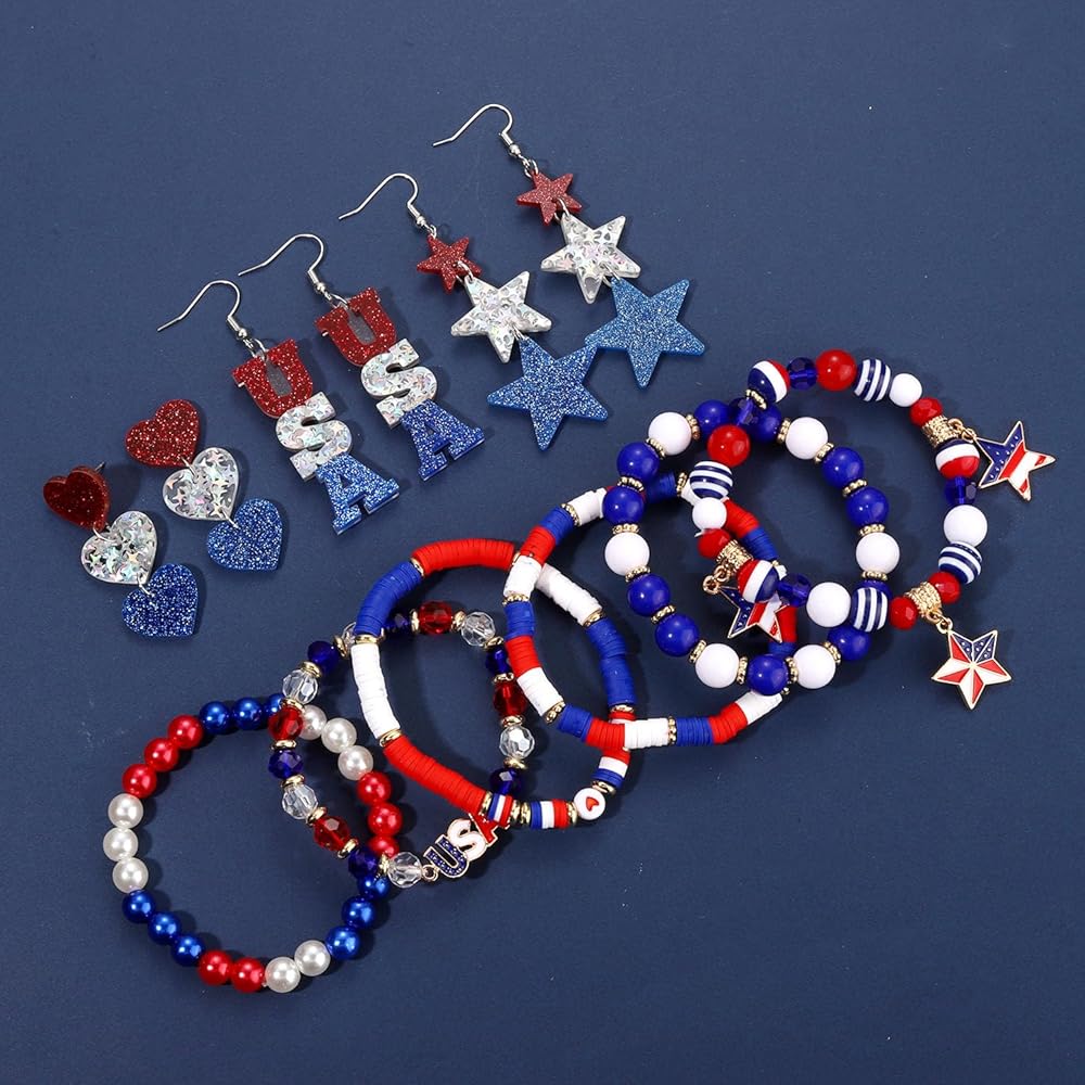 زينة إكسسوارات حفلات العطلات - إكسسوارات المجوهرات ذات طابع العلم الأمريكي مثالية للحفلات ذات الطابع المتنوع، والاحتفال بالرابع من يوليو، والتجمع بيوم الاستقلال، واحتفالات يوم الذكرى، وحفلات أرنيفال، وحفلات أعياد الميلاد، وتكريم يوم المحاربين القدامى، والحفلات ذات الطابع الوطني، ويوم العلم الوطني، والانتخابات. اليوم والحفلات الموسيقية والفعاليات الرياضية والعروض المسرحية والمناسبات اليومية المتنوعة، يمكن مطابقتها مع مجموعة متنوعة من الأزياء، أسرعي وارتديها للاستمتاع بالعطلة!