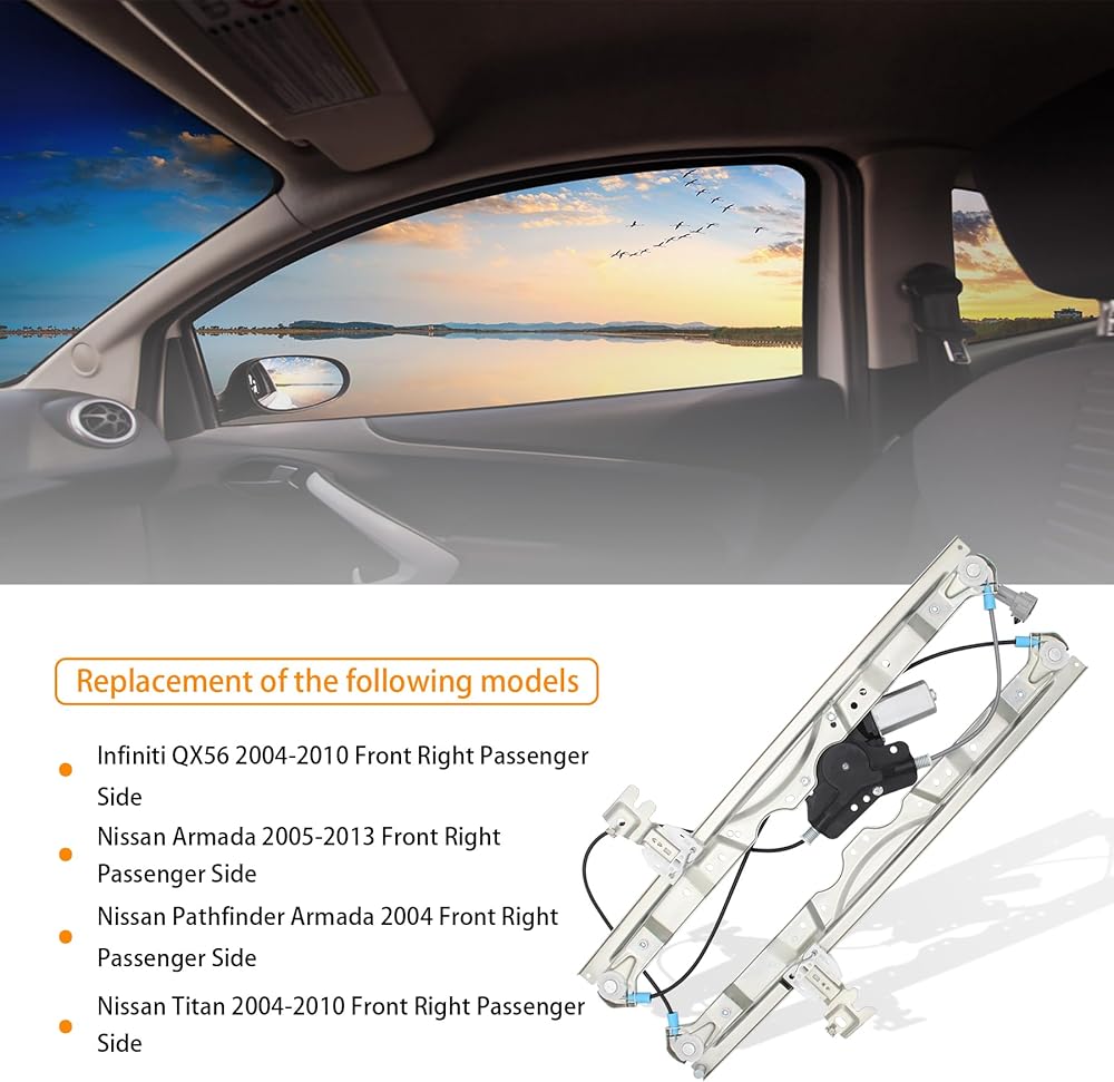 منظم نوافذ الطاقة ومجموعة المحرك متوافق مع Infiniti QX56 04-10/Nissan Armada 05-15/Pathfinder Armada 2004/Titan 04-15 جانب الركاب الأيمن الأمامي، استبدل 748-525 807207S000