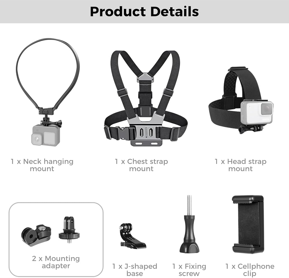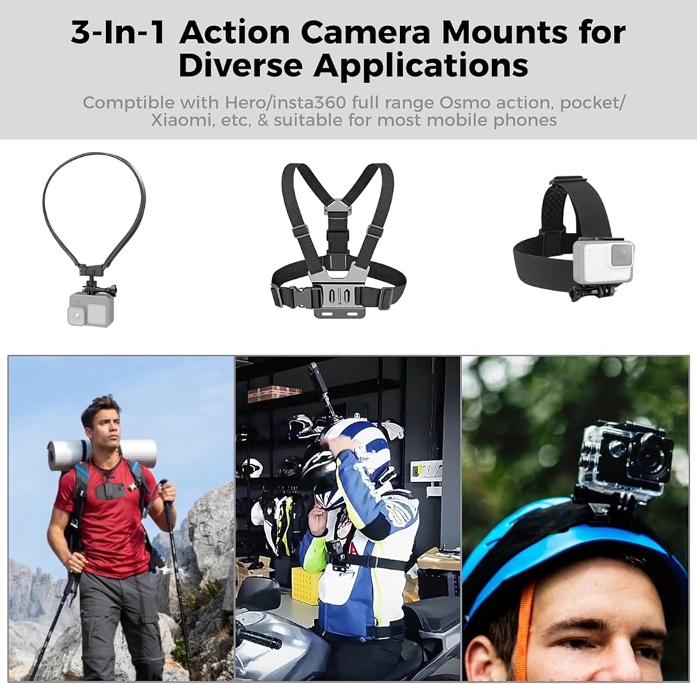 【مجموعة تثبيت سيلفي لكاميرا الحركة 3 في 1】 تتضمن هذه المجموعة من حوامل كاميرات الحركة 3 دعامات مميزة للاستخدام متعدد الاستخدامات: حامل حزام الصدر، وحامل معلق للرقبة، وحامل حزام الرأس. باستخدام هذه المجموعة، يمكنك تلبية مجموعة من الاحتياجات لالتقاط صور شخصية/مدونات فيديو بكاميرا الحركة في سيناريوهات مختلفة.