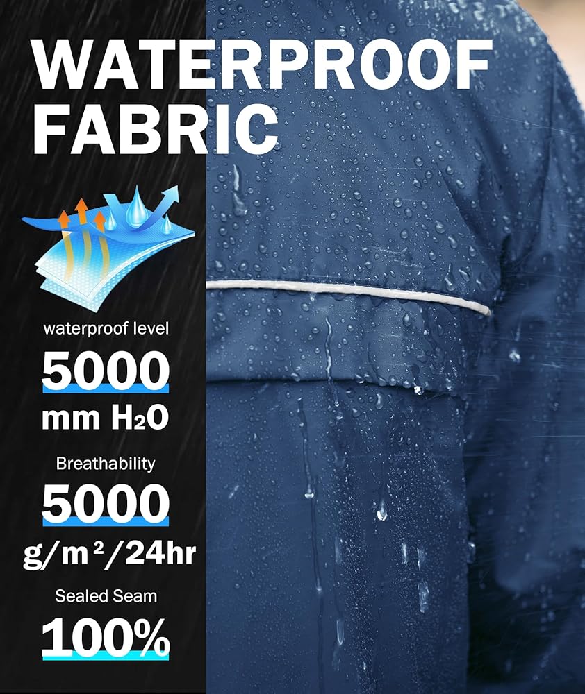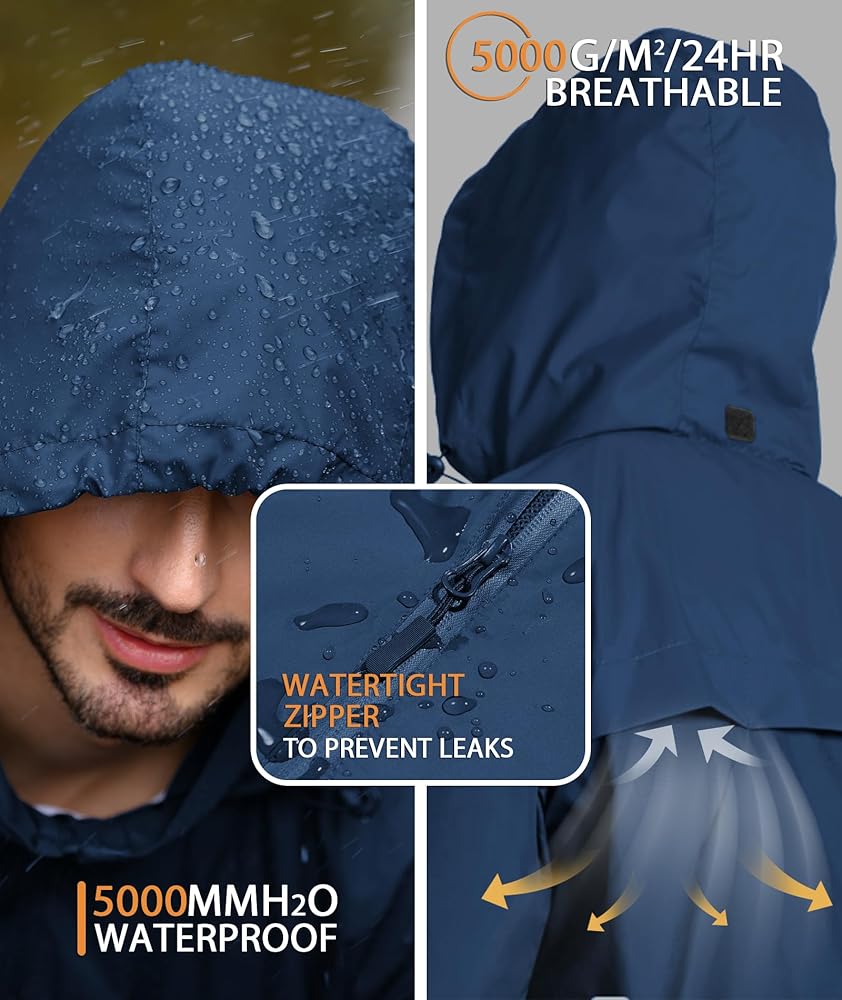 مقاومة للماء والرياح: تعمل سترة المطر الرجالية الخاصة بنا بشكل جيد في مقاومة الرياح والماء، ومقاومة للماء 5000 مم وتنفس 3000 جم/م2/24 ساعة. متينة بما يكفي لتحمل أي شيء. يعمل نظام التهوية في الخلف على تعزيز التهوية مما يساعد على إبقائك باردًا وجافًا
