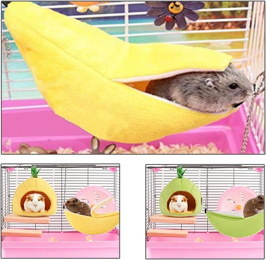 2. شكل موزة لطيف: تصميم سرير الهامستر هو شكل موزة، لطيف وعصري، مما يضيف بيئة حيوية وجميلة لقفص الهامستر.
