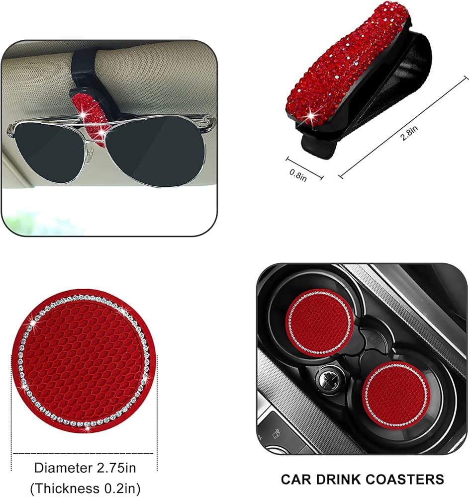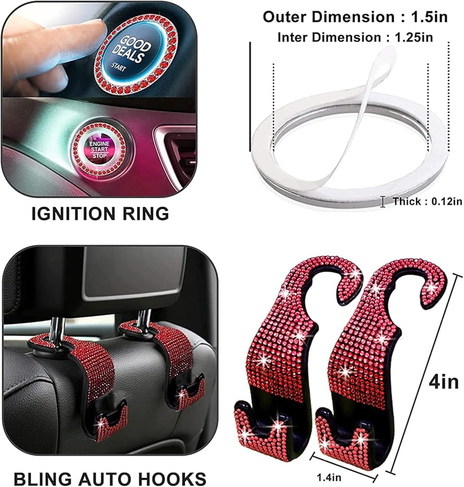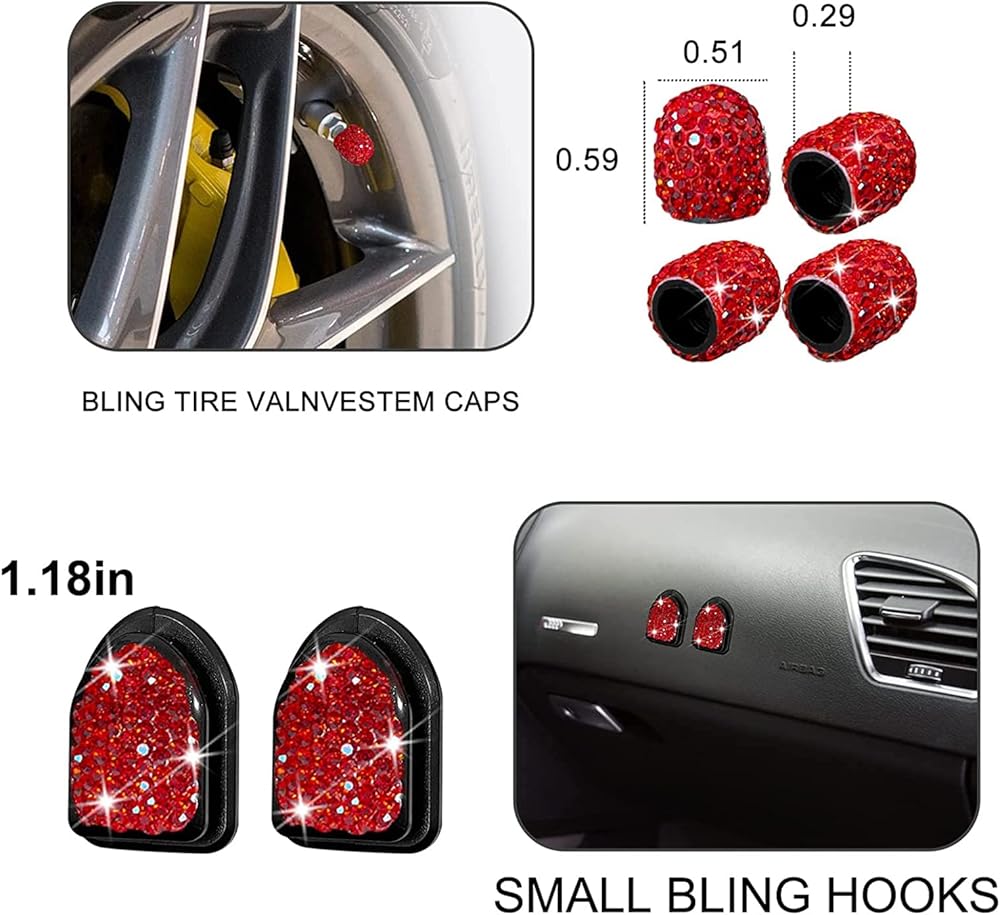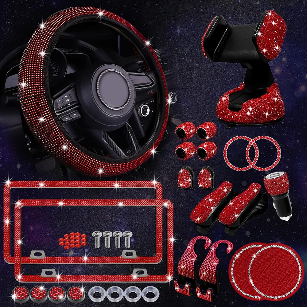 ✨【WHAT YOU WILL GET】19-pack of bling crystal girl car accessories: 1 bling steering wheel cover, 2 shiny license plate holders, 1 bling bling car phone holder, 1 USB car charger, 2 large bling car seats Chair hooks for wallet handbags, 2 bling cup holders to insert coasters, 2 start button loops, 2 eyeglass holders, 4 valve covers and 2 mini hooks. Ideal gift choice for female girls. Note for select models: This kit is compatible with all models except 2018 Tiguan SEL, 2018 Mazda 3, 2017 Cadillac XT5, BMW 325xi. ● 100% Satisfaction Guarantee!