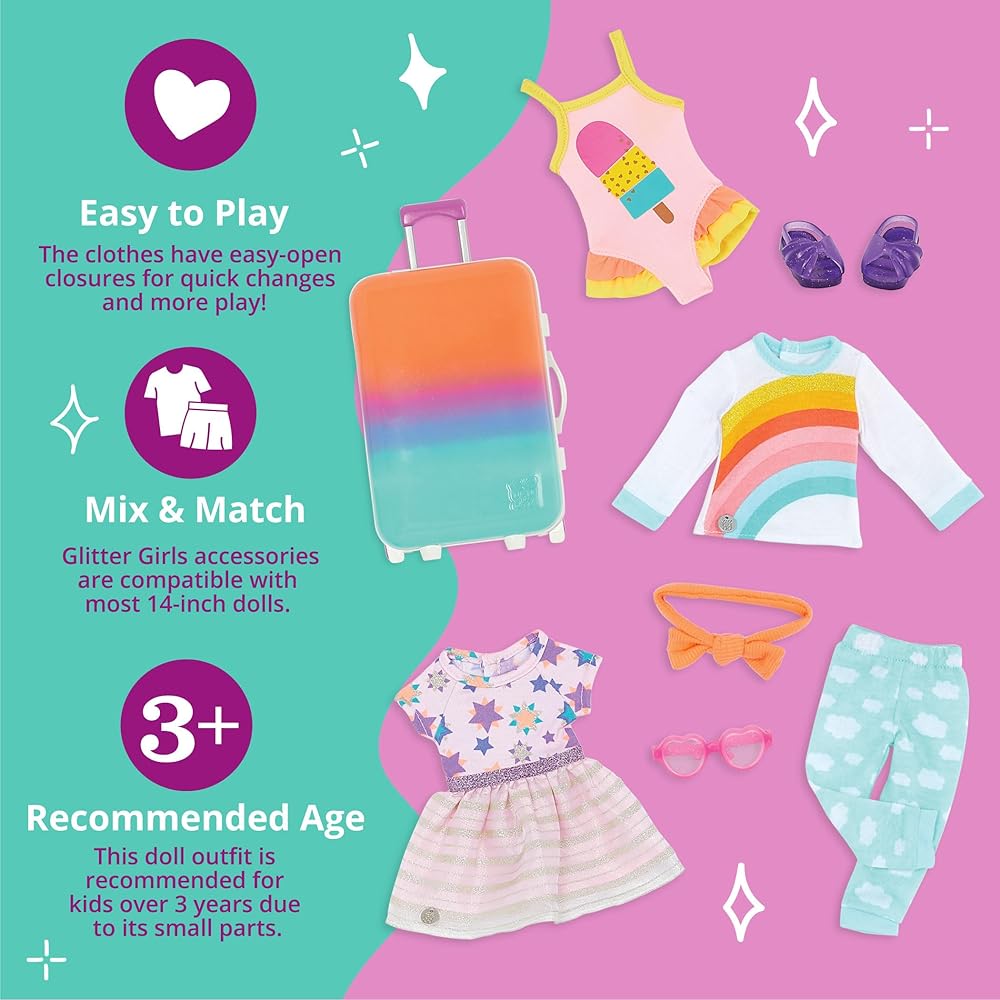 Mix & match: outfit has easy-open closures to quickly put on and remove; compatible with most 14-inch dolls, outfits, and accessories.