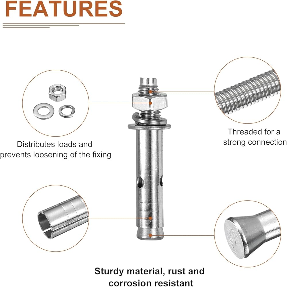 الميزة - تم تصميم رأس المسمار بمسامير ملولبة، ويتم الضغط عليه بالتساوي ولديه اتصال خيط موثوق وقدرات التثبيت. يمكن تثبيته بقوة على الخرسانة أو البلوك أو الطوب أو الحجر أو الجدران أو أي سطح صلب.
