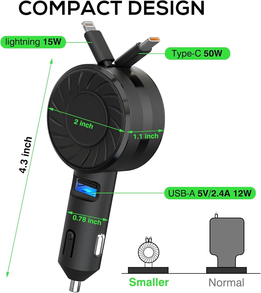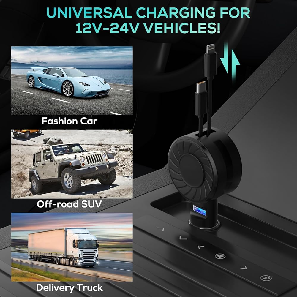 شاحن سيارة 3 في 1 قابل للسحب متوافق مع العديد من الأجهزة ومناسب لمعظم المركبات: مناسب للهواتف والأجهزة اللوحية وأجهزة الكمبيوتر المحمولة والمحولات وما إلى ذلك. مثل iPhone 15/14/13/12/11/ Plus/ Pro/ Pro Max/ mini/XS ماكس/XR/X/8/7/6/6S، سامسونج جالاكسي S24/S23/S22/S22/S10 5G/S9 Plus/S8+/Note 9/Note 20 Ultra/ Note10 Plus/A54، جوجل Pixel7/7a/6 /6a/5/2 3 4xl/3a/Nexus 6P وما إلى ذلك ومناسب للسيارات السائدة 12 فولت-24 فولت.