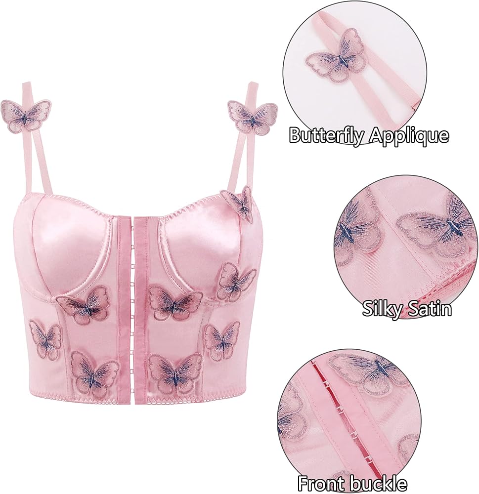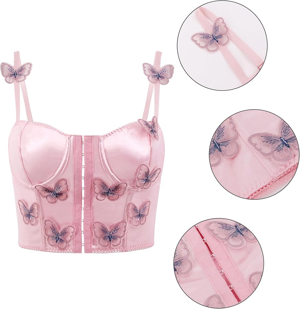 - ✿ مميزات التصميم: طراز كورسيه مثير للجسم، مخيط بفراشة ثلاثية الأبعاد، جميل جدًا وساحر. إغلاق بخطاف وعين في الأمام، مريح جدًا عند الارتداء والخلع.