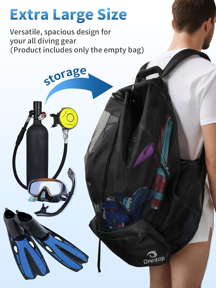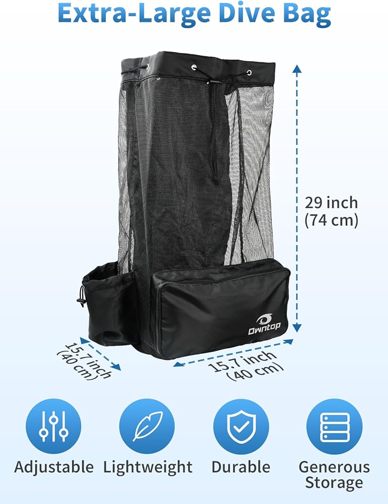 🌴Durable Material: Constructed with 600D Polyester and PVC Coated mesh, the Owntop Scuba Diving Bag is sturdy and robust