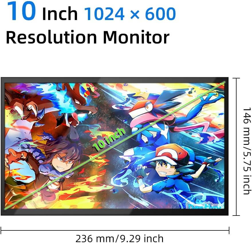 شاشة HD IPS: شاشة عرض عالية الجودة، شاشة عرض كاملة IPS 178 درجة، مع دقة عالية 1024 × 600، عمل مستقر ومضاد للتداخل، صورة مشبعة ساطعة، إعادة إنتاج ألوان عالية، زاوية رؤية واسعة، سرعة استجابة سريعة، لون دقيق التكاثر.