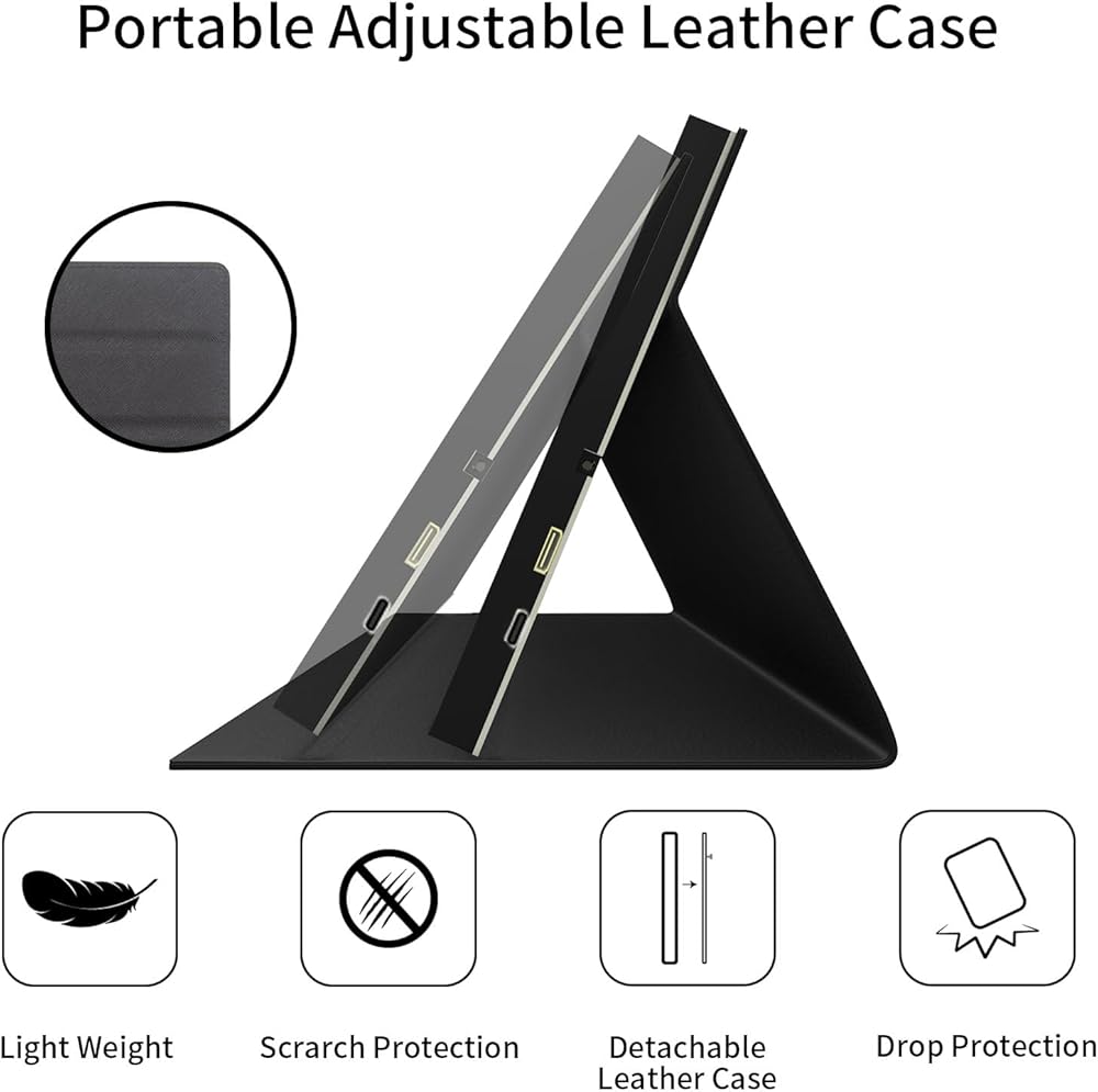 حامل جلدي محمول: تأتي شاشة Raspberry Pi مع حافظة جلدية واقية، وهي خفيفة الوزن للغاية وسهلة الحمل، مما يقلل بشكل فعال من الضرر الناتج عن الصدمات. يحتوي الحامل الجلدي على زاويتين قابلتين للتعديل، ويمكن وضعهما بحرية حسب احتياجاتك. يوجد برغيان قابلان للإزالة في الخلف، ويمكن إزالة الحافظة بعد فكها، وهو أمر سهل ومريح.