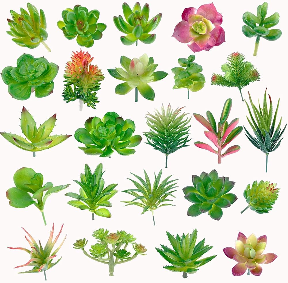 • PACKAGE INCLUDED - 24 pcs artificial succulents and plants for your miniature garden or fairy garden!