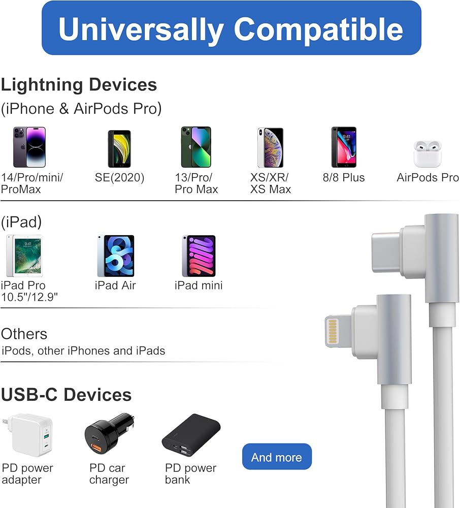 تصميم إنساني مزدوج 90 درجة: كابل USB-C إلى Lightning عملي ومبتكر بزاوية 90 درجة يجعل من السهل حمل هاتفك أثناء اللعب أو مشاهدة مقاطع الفيديو. يمكن للواجهة المثالية بزاوية 90 درجة حماية واجهة الجهاز بشكل أكبر، وتجنب ثني كابل البيانات وكسره، وإطالة عمر الخدمة. لن يتم إخراج كابل USB C إلى Lightning القابل للسحب بزاوية 90 درجة من هاتفك أو منفذ الشاحن عندما تقوم بتمديده بقوة. .