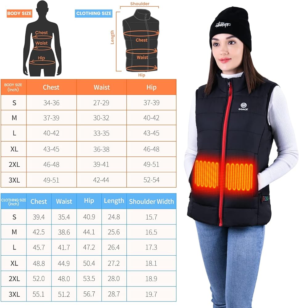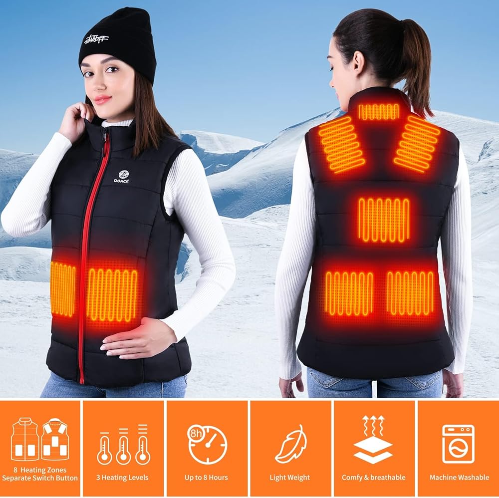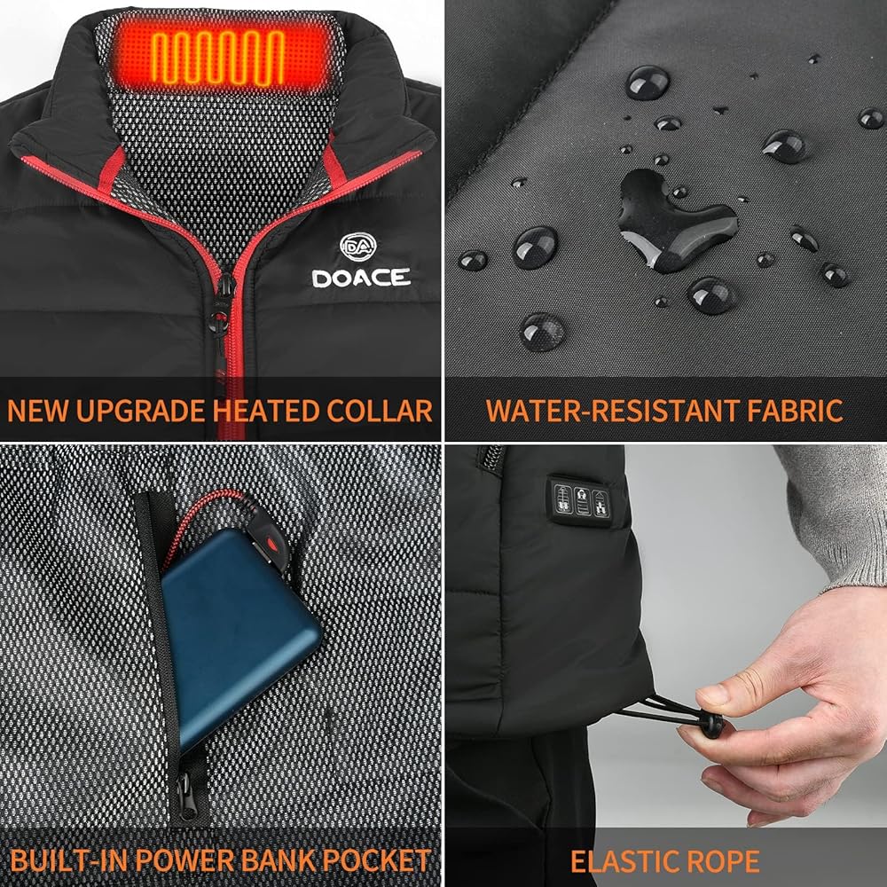 ✅ ✅ ✅【سترة ساخنة جديدة ومحدثة】تعمل سترة DOACE الساخنة كمبرد شخصي للحفاظ على دفء جسمك في أي وقت. باعتبارها واحدة من العلاج الحراري، يمكن للسترة تعزيز تدفق الدم الصحي الذي يزيد من تدفق الأكسجين والمغذيات إلى العضلات، وتخفيف الألم، وتقليل وقت التعافي وتحسين الأداء العام. إنه مصمم خصيصًا لمعظم الأشخاص مثل العاملين في الطقس البارد وغيرهم ممن يقومون بأنشطة خارجية (مثل ركوب الدراجات والمشي لمسافات طويلة وغيرها من الرياضات الشتوية).