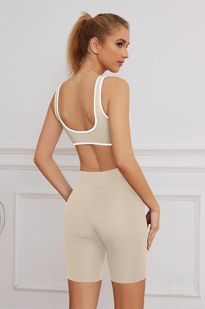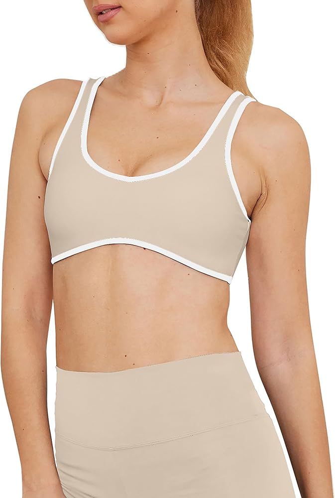 مطابقة: جزء علوي من حمالة الصدر الرياضية المتباينة ذات الأشرطة العريضة والمبطنة، يسهل تنسيقه مع السراويل الضيقة أو شورتات راكبي الدراجات أو سراويل الركض أو سراويل اليوجا أو السراويل الرياضية أو الأحذية الرياضية أو القلنسوة أو أغطية لإضفاء مظهر رياضي غير رسمي.