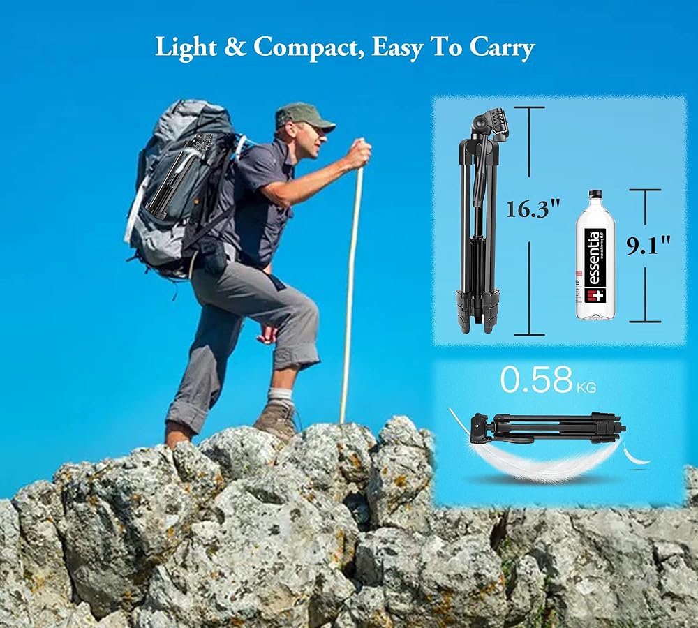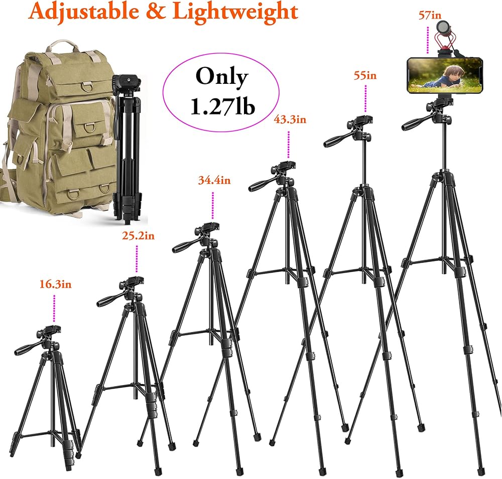 【متعدد الأغراض】 - حامل ثلاثي القوائم للهاتف الخلوي هذا مصنوع من الألومنيوم عالي الجودة، و3 أرجل قلابة سريعة التحرير، وأرجل ناعمة تسمح لك بالتمدد من 16 بوصة إلى 57 بوصة في ثوانٍ معدودة. فقط 1.27 رطل مع حقيبة حمل، واحدة من أكثر حوامل الحامل ثلاثي القوائم خفيفة الوزن. مناسب للاستخدام الخارجي والداخلي، مثالي لتسجيل الفيديو، والصور الجماعية، والسفر، ومدونات الفيديو، ومقاطع فيديو Youtube، والبودكاست، وFacebook Live، وFacetime، وInstagram، والبث المباشر، واجتماعات Zoom، والتعليم والتعلم عبر الإنترنت