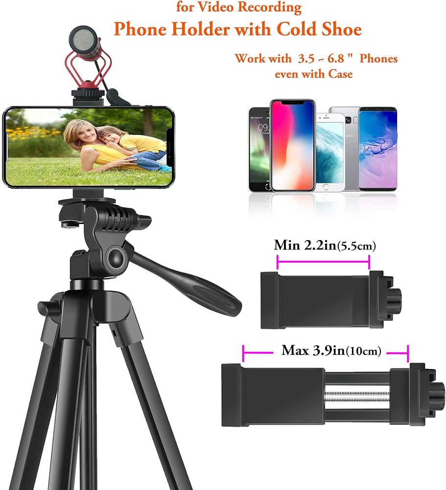 【متوافق على نطاق واسع】 - يأتي هذا الحامل الثلاثي لهاتف iPhone مع حامل هاتف عالمي مع حذاء بارد يناسب معظم الهواتف المحمولة ذات الجراب السميك، متوافق مع هواتف مثل iPhone 13Pro Max وiPhone 13 Pro وiPhone 13 وiPhone 12 وiphone 11 وما إلى ذلك، Galaxy S21 Ultra، S21، S20، S10، Note 20Ultra، Note 20، Note 10، A52، A51، A71etc، Google Pixel، Huawei، الهواتف الذكية ذات شاشة أقل من 6.8 بوصة. مع جهاز برغي 1/4 بوصة، مثل الكاميرا، Dslr، Slr، كاميرا الحركة، Gopro، كاميرا الويب، كاميرا الفيديو
