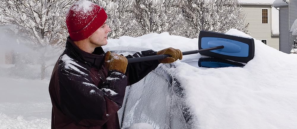 This snow sweeper has a foam pad for brushing snow at no risk of damaging paint, trim, or glass on your car. The dual-purpose design provides an ice scraper for mirrors and windows as well. The telescoping pole offers adjustable reach for taller vehicles and the lightweight design reduces fatigue during maintenance. Storage is made easy with removable pad that clips directly to the pole!
