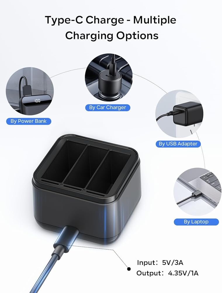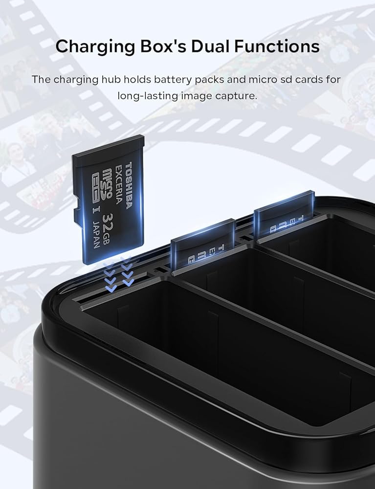🔋Dual-function 360 Ace Pro Charger Case: The 360 Ace Pro fast charger hub can double as a space storage box for 360 Ace/Ace Pro batteries and can charge 3 batteries efficiently simultaneously, saving charging time. Replacement Insta 360 Ace Pro battery box with built-in 3 Micro SD card storage slots to save storage and prevent loss.