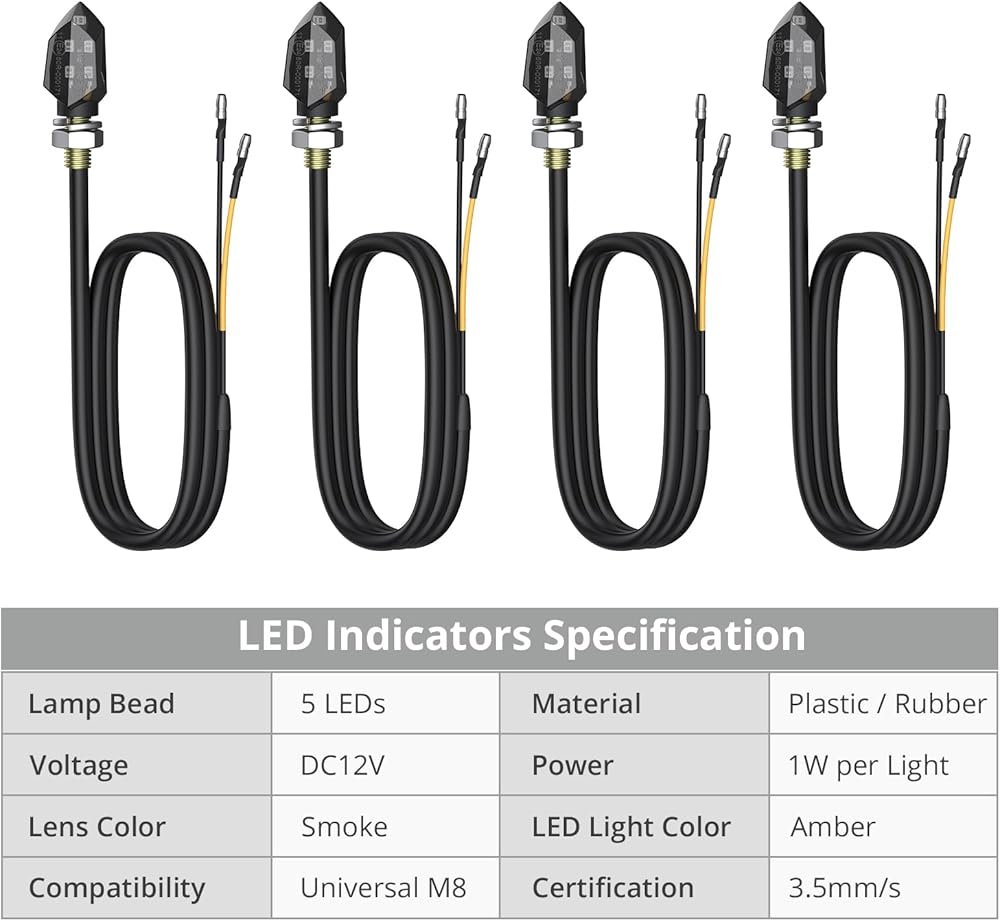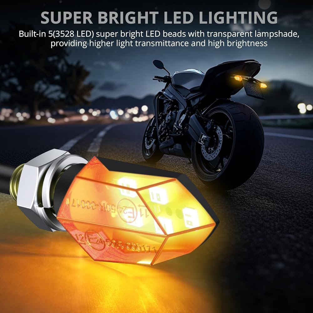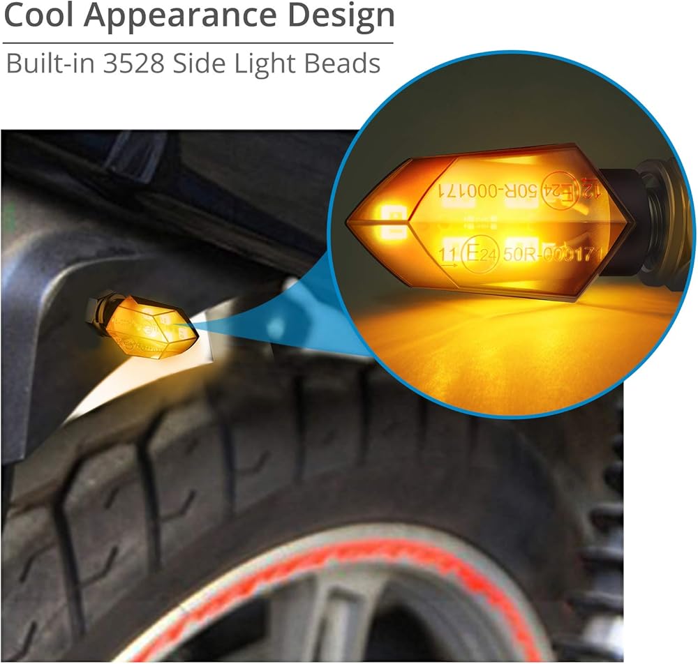 【Enhanced Visibility】Improve your motorcycle's visibility on the road with 4PCS 5LEDs micro motorcycle indicator lights. Each light features 5 built-in 3528 side light beads, providing high brightness while consuming low power. Enhance safety and ensure that your turn signals are easily seen by other drivers