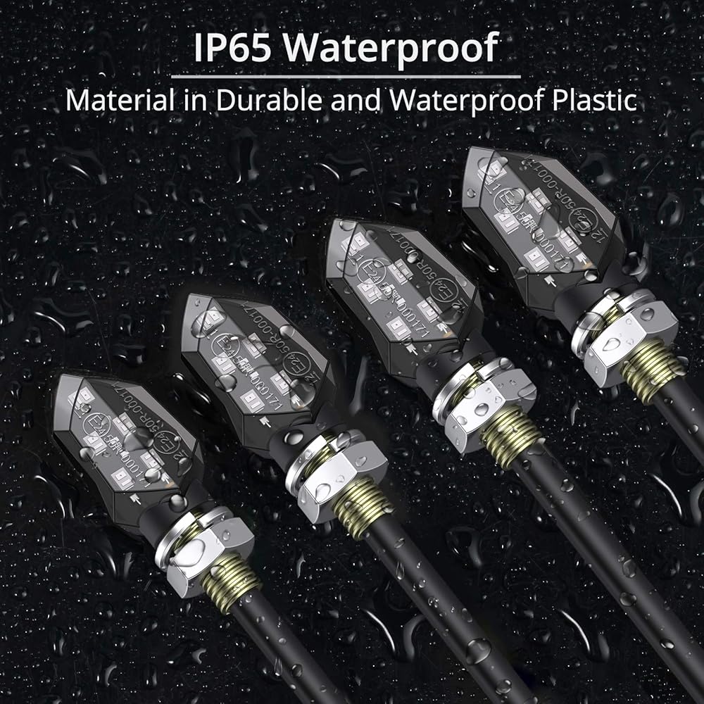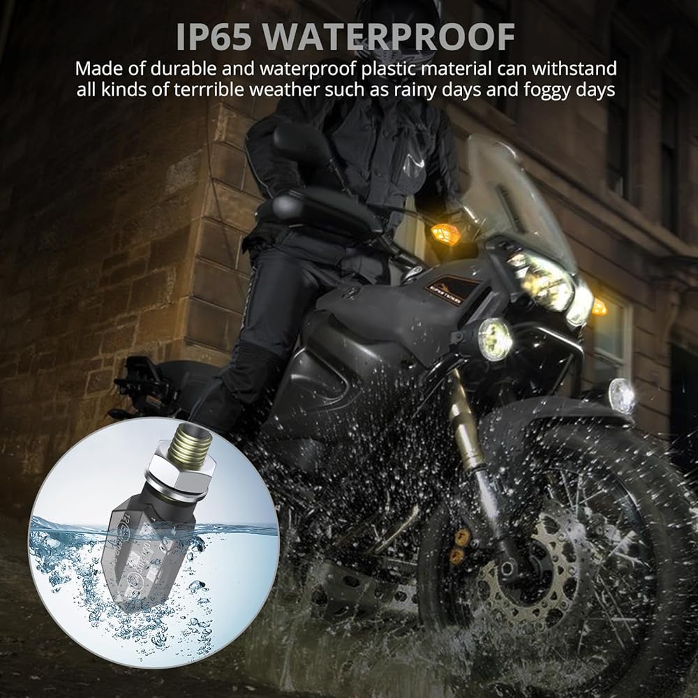【Waterproof and Durable】These turn signal lights are designed to withstand various weather conditions. With an IP65 waterproof rating and durable metal construction, they are resistant to water damage, ensuring long-lasting performance. Ride with confidence, knowing that your turn signals are built to withstand the elements