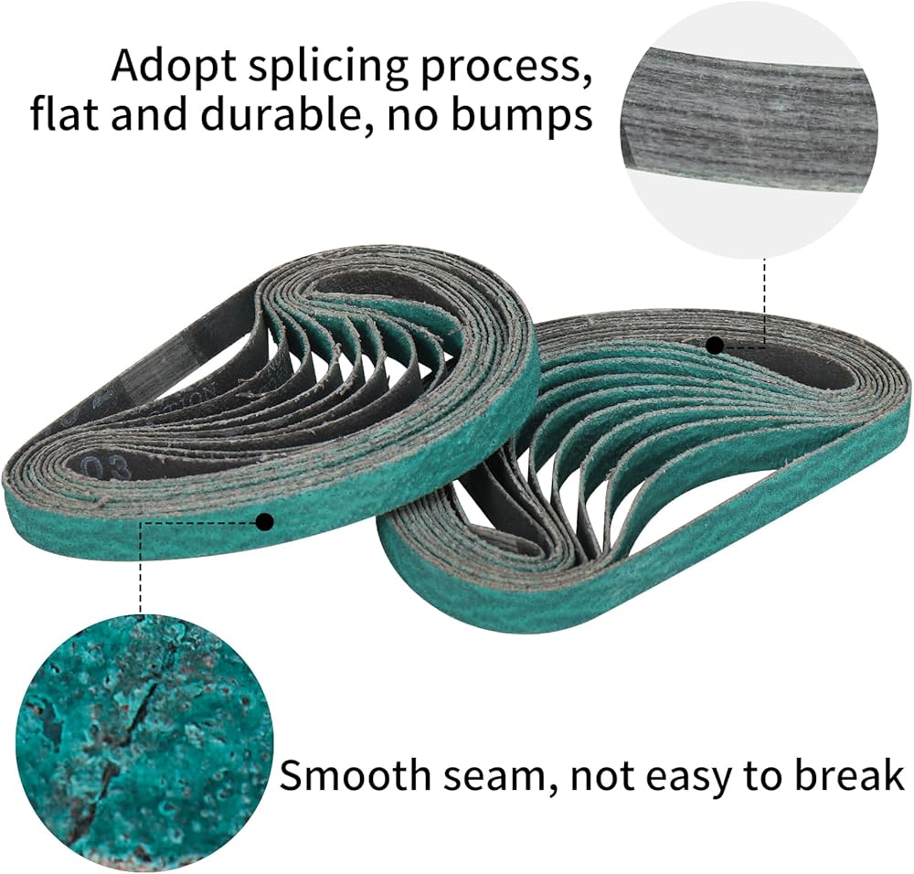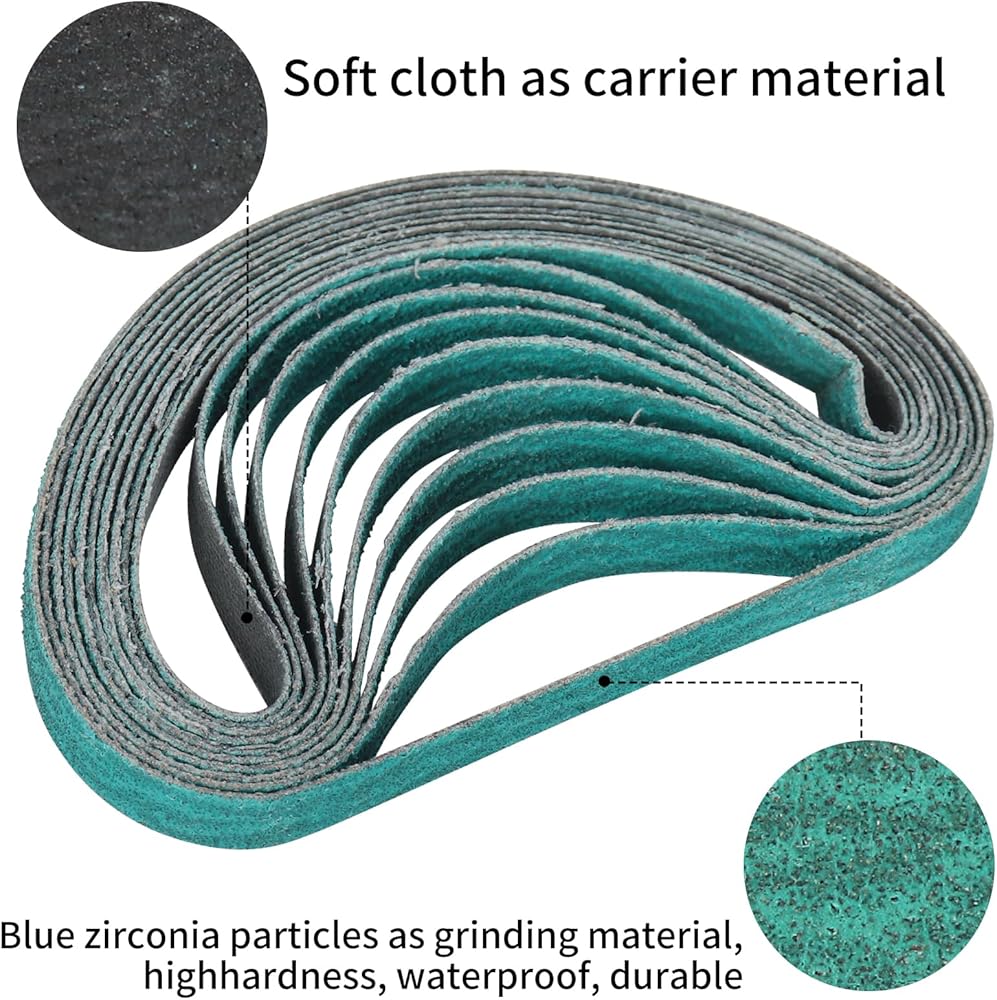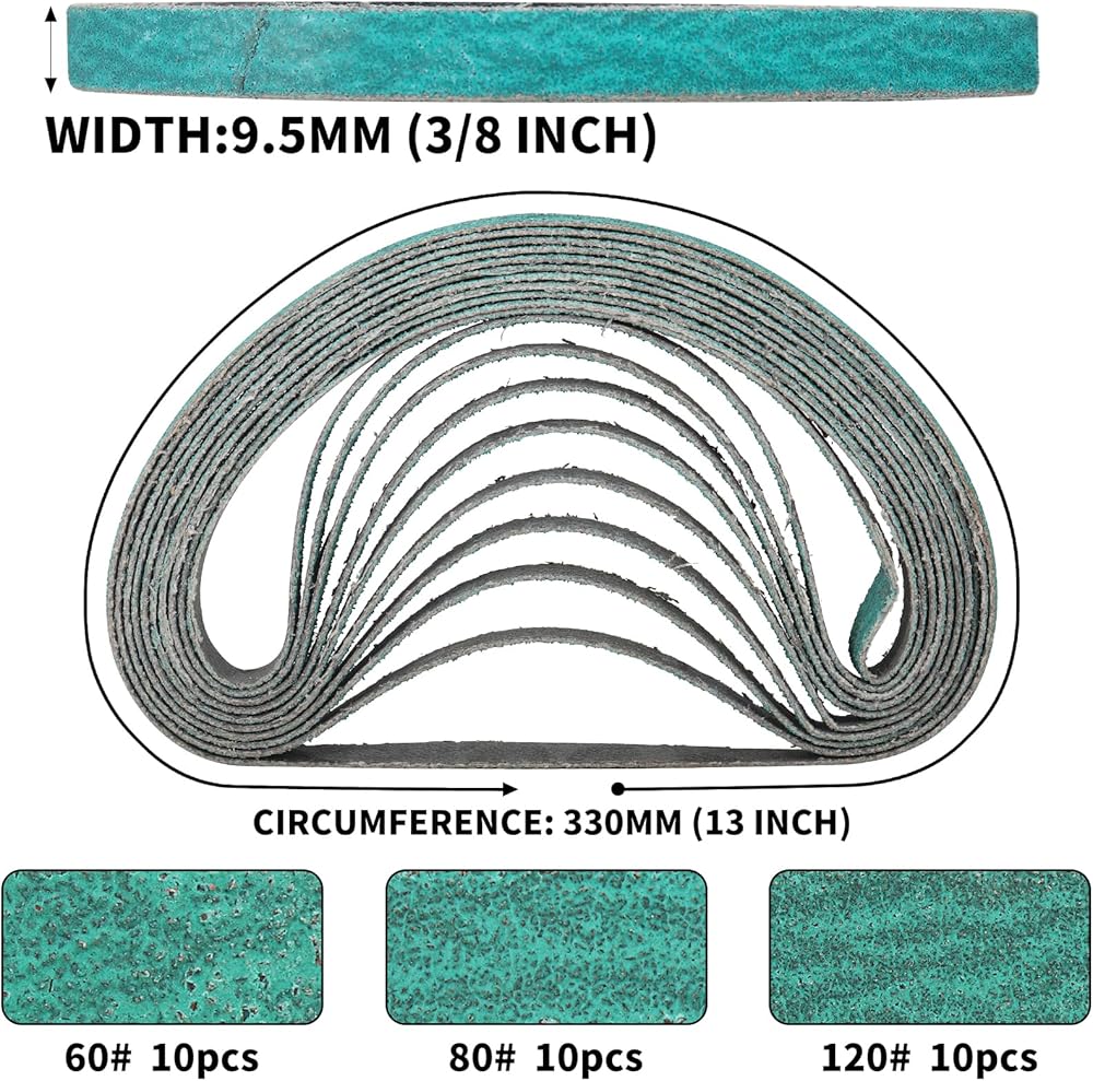 أحزمة صنفرة من أكسيد الزركونيوم مقاس 3/8 × 13 بوصة، 60/80/120 أحزمة مبرد كاشطة متنوعة لصنفرة حزام الهواء، 30 عبوة