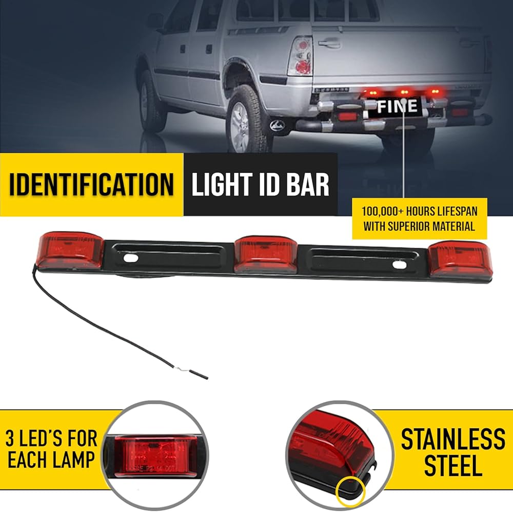 • Bright red LED light strip functions as identification light bar for Truck and trailers.