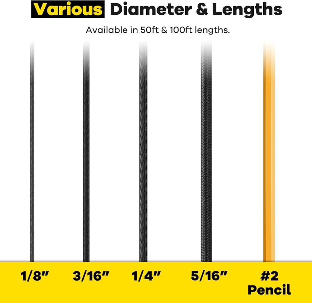 سلك صدمات بطول 100 قدم 1/8 بوصة - مرن 100% - حبل بنجي من البوليستر الداكرون من الدرجة البحرية للمشروعات التي تصنعها بنفسك، وربطات العنق، وقوارب الكاياك، وسلك مرن للاستخدامات التجارية (1/8 بوصة، 100 قدم)