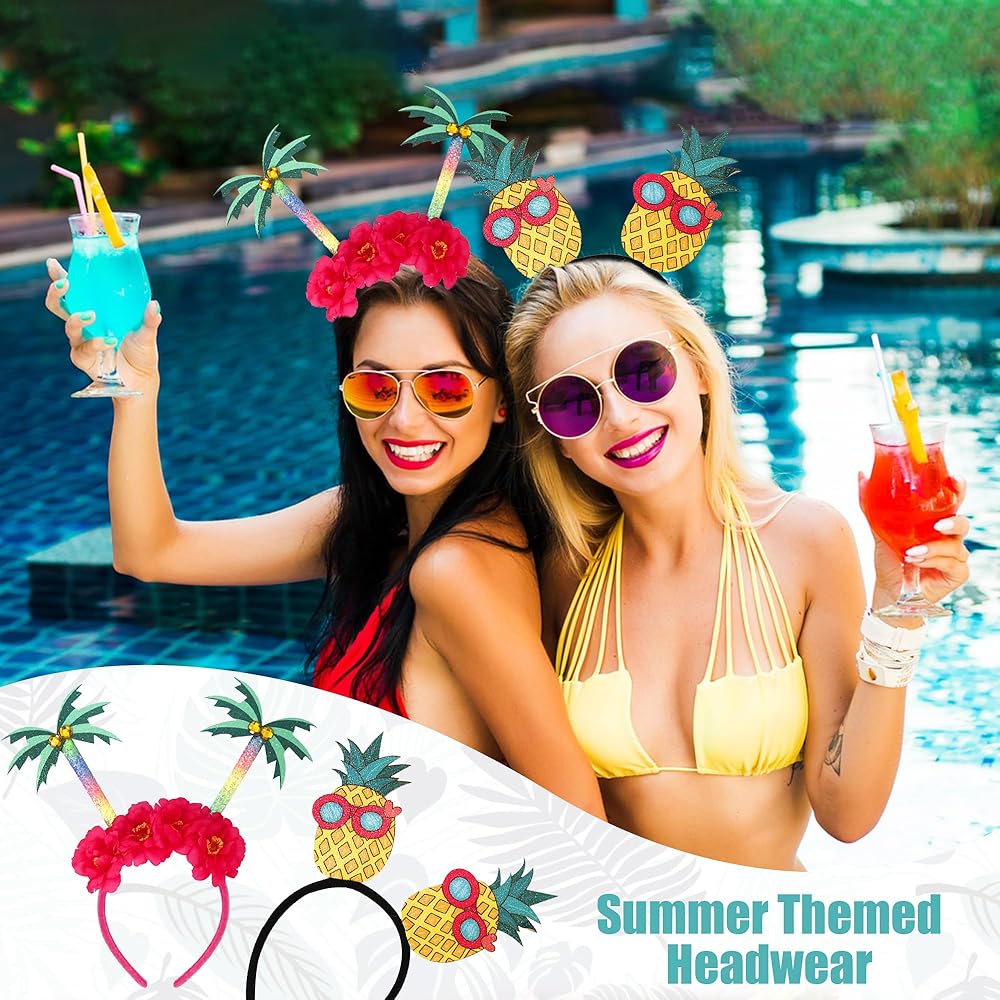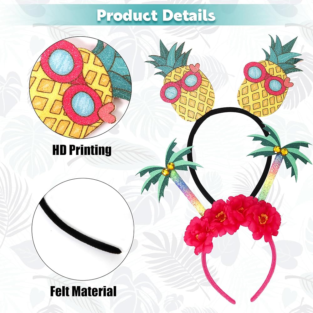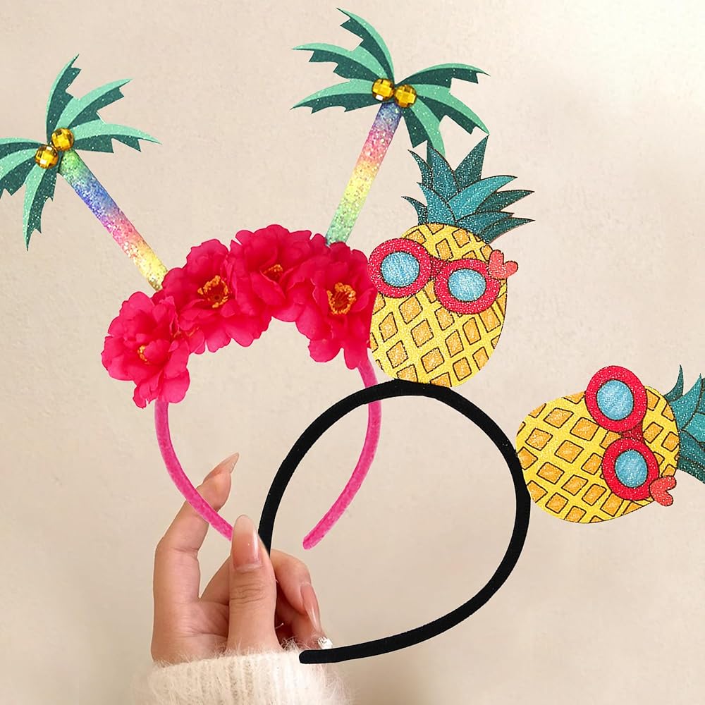🎀 Versatile Set: Each set includes one pineapple headband and one palm tree headband, ensuring you're ready for any festive occasion.