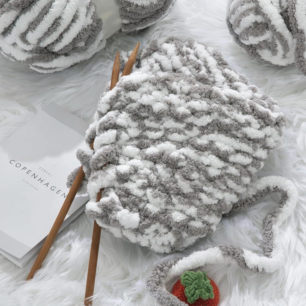 【Chunky Chenille Yarn】Chunky Chenille Yarn is super cozy and fluffy, lighter and softer! a classic chioce of all your knitting craft projects, the huge yarn maintains a stylish chunky & cozy appearance with the added benefit of being light in weight, thickly to be easy to use.