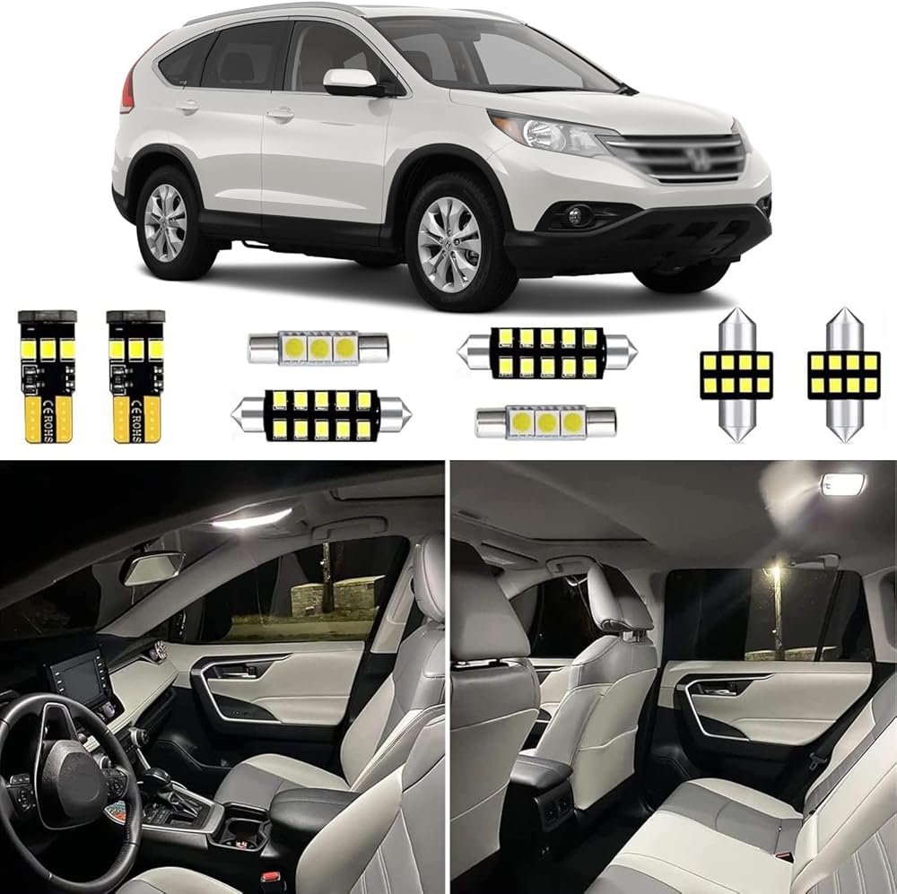 ----10pcs CRV Interior LED Package. A full set CRV led interior light bulbs to replace your crv inside map light, dome light, vanity mirror lights, trunk/cargo lights and exterior license plate tag lights.