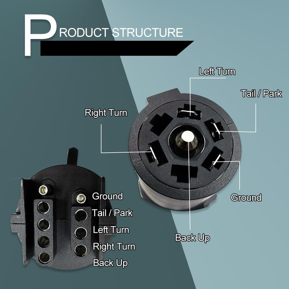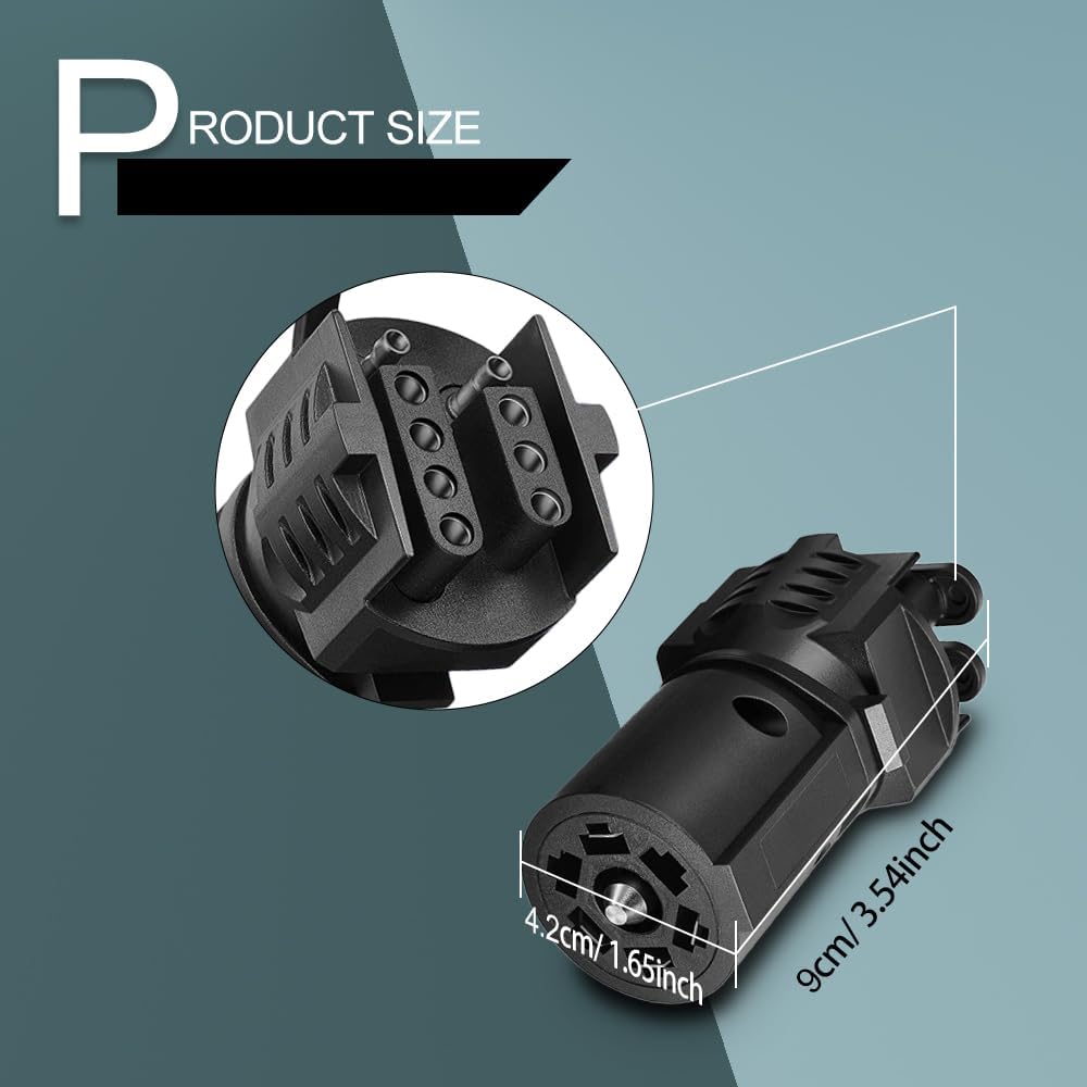 [2-in-1 Plug design]: This trailer plug adapter uses a 2-in-1 design, combining 4-way plugs and 5-way plugs. The ability to easily convert 7-way Flat blades to 5-way and 4-way circular connectors.