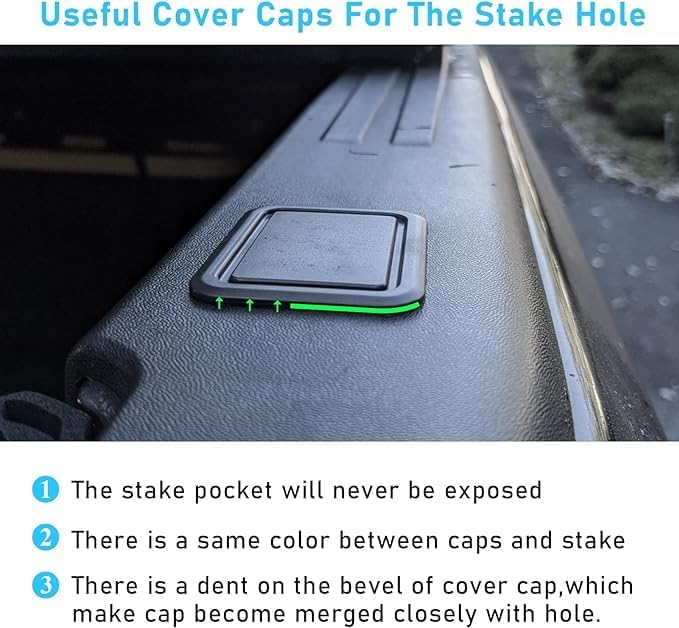 حماية فعالة: توفر هذه المجموعة من أغطية الجيب Stake حماية فعالة من الحطام والرطوبة وغيرها من عناصر الطقس الضارة من الدخول إلى جيب Stake، مما يساعد على الحفاظ على نظافة ونظافة سرير سيارتك.