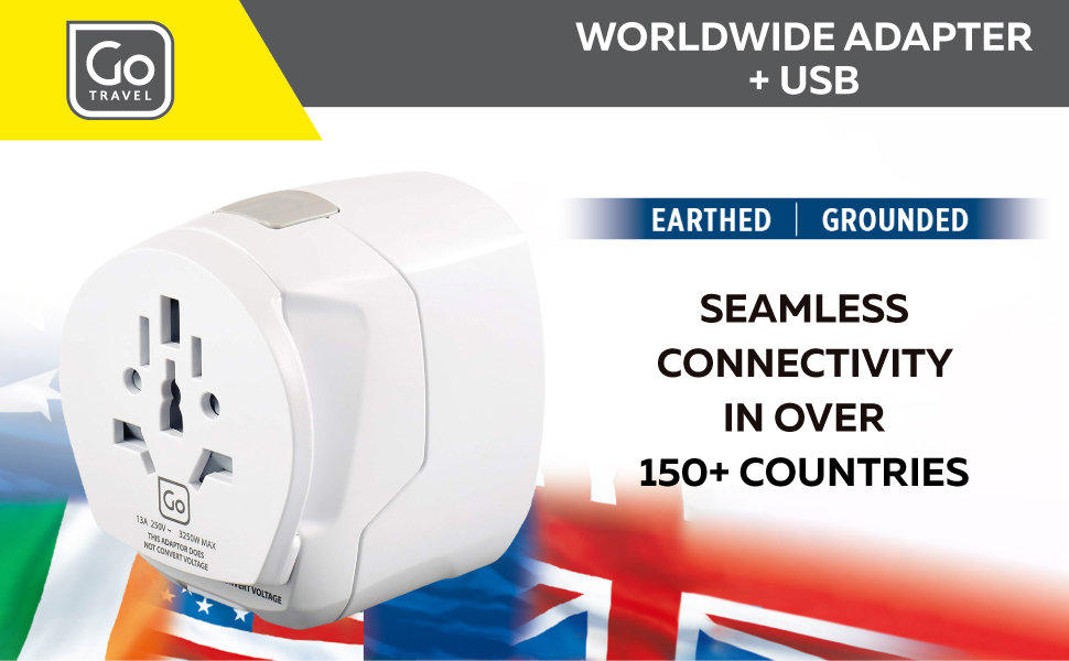 للسفر حول العالم: ابق على اتصال أينما ذهبت باستخدام محول Go Travel Worldwide + USB. حل موثوق به، محول السفر الخاص بنا مثالي للسفر بين أكثر من 150 دولة. البناء القوي مثالي لقسوة السفر المتكرر.