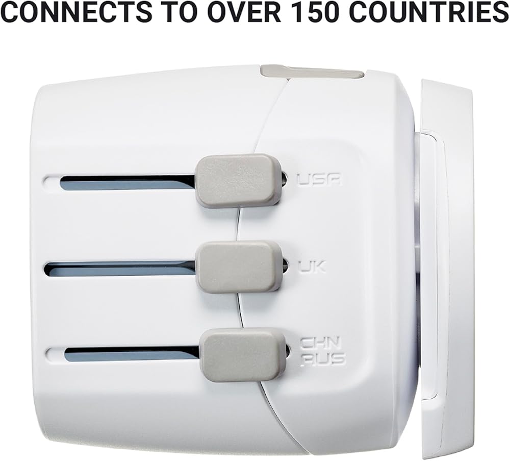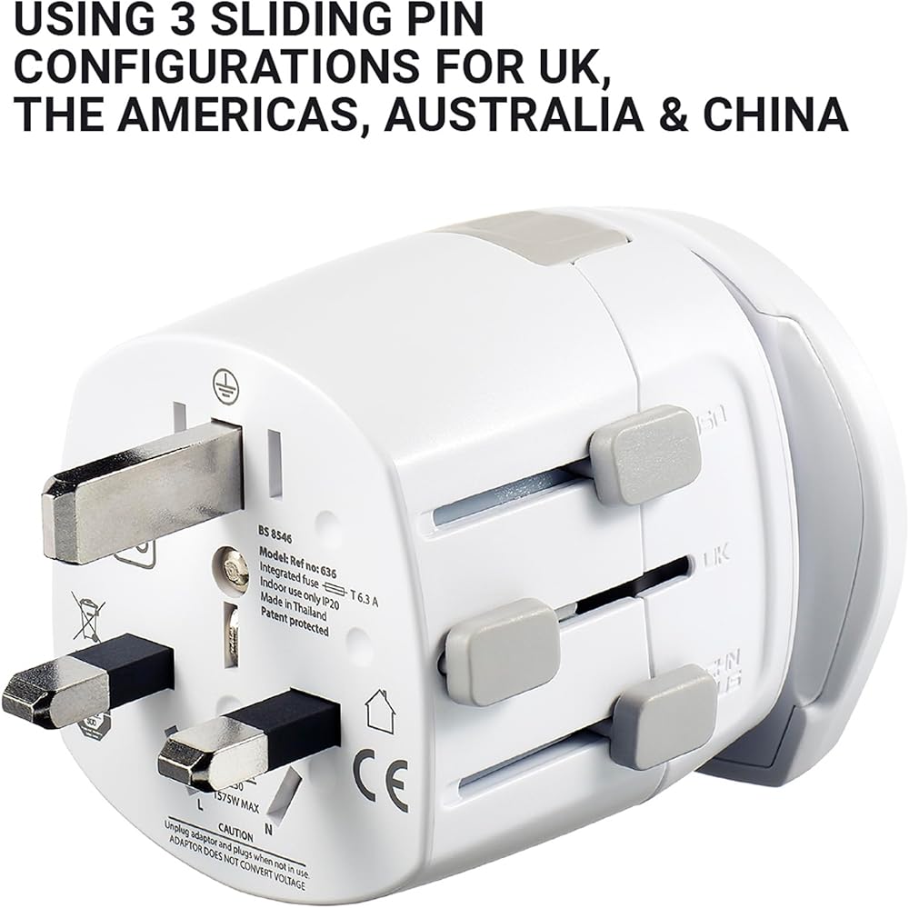 التعديل السريع: يتميز محول القابس بثلاثة وجوه قابس منزلقة تتناوب بين تكوينات أمريكا الشمالية والمملكة المتحدة وأستراليا/الصينية. يحتوي أيضًا على منفذي USB ومحول أوروبي قابل للفصل يحول المقابس المؤرضة ذات 3 سنون لتناسب معظم مقابس الاتحاد الأوروبي.